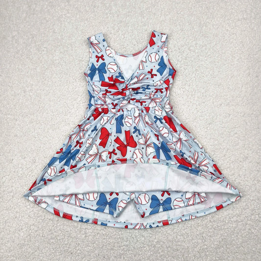GSD2150 Red white and blue with little tennis balls acticve sleeveless dress for kids girls