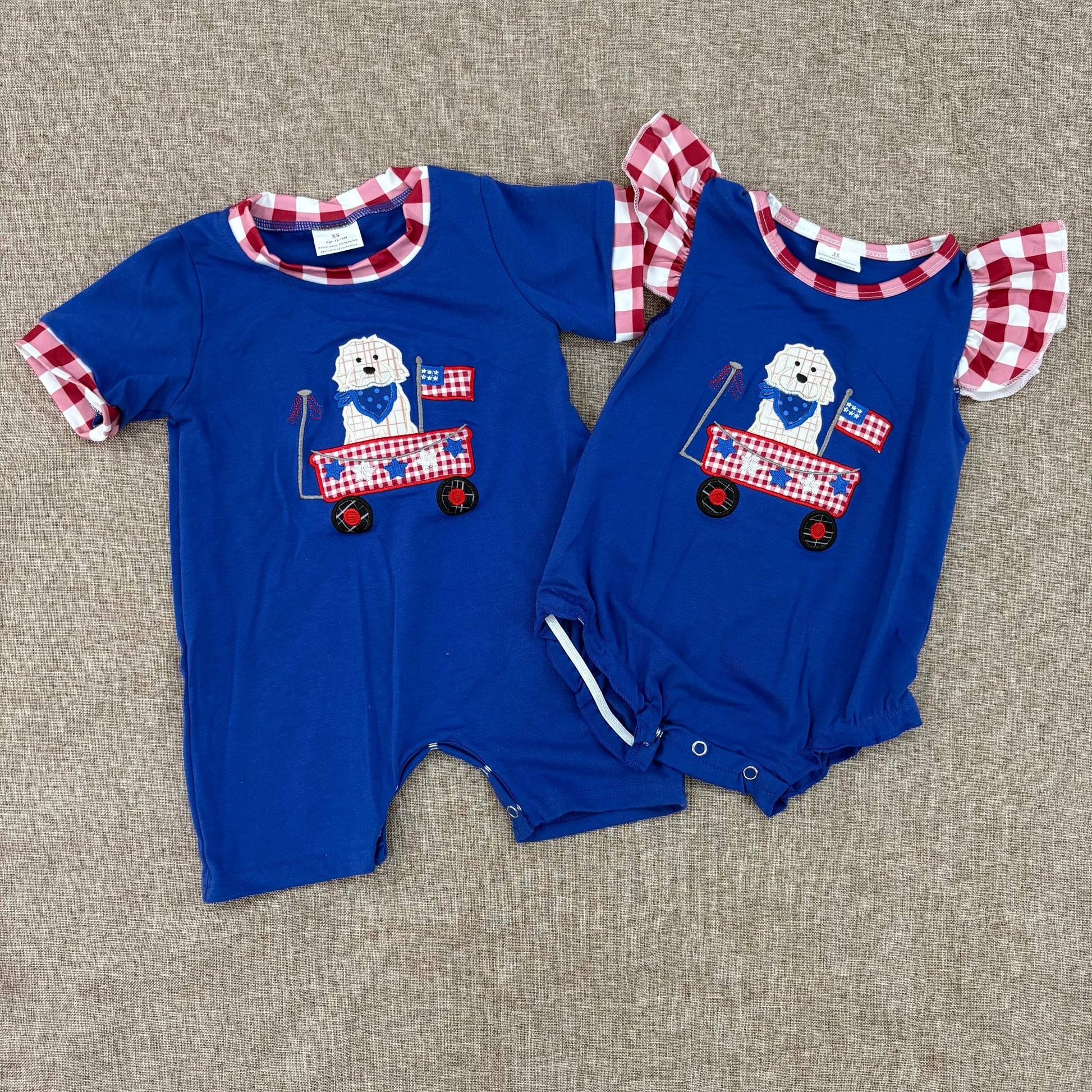 4th Of July Flag Dog Summer Shorts Sleeve Romper Sibling Wear