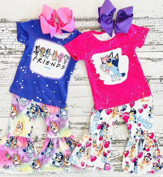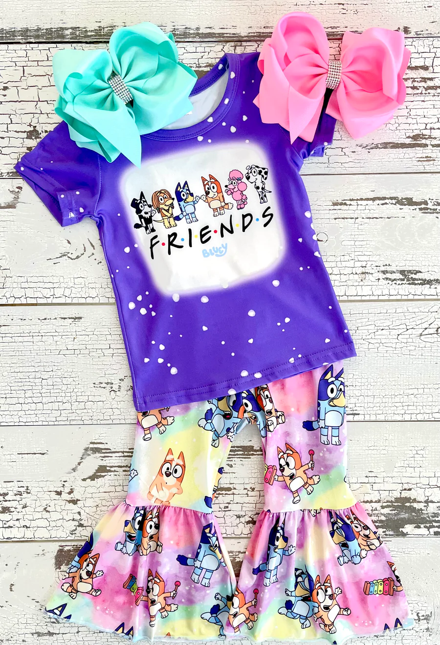 Purple Friends Blue Dog Bell Bottoms Outfit