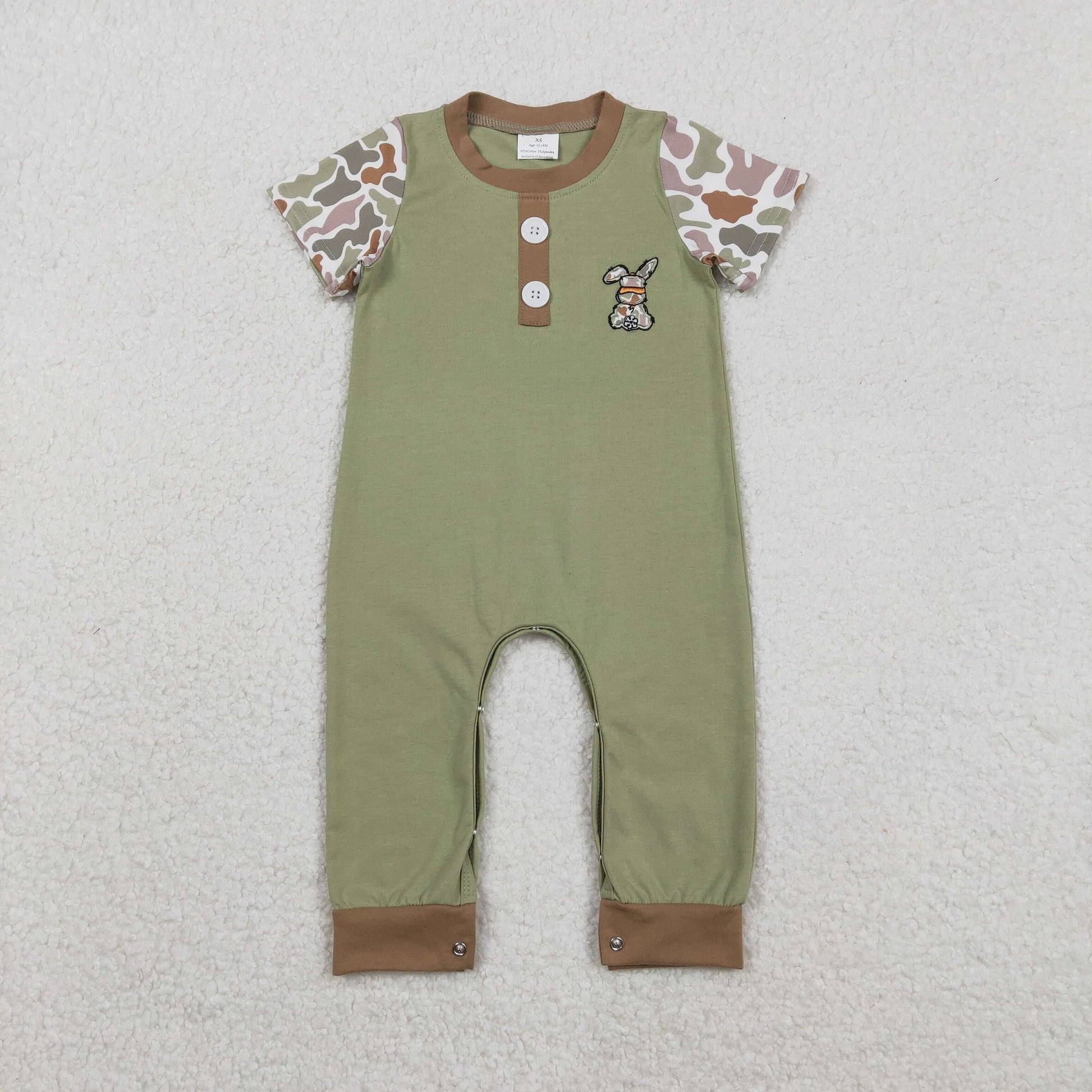 Baby Boys Embroidery Easter Bunny Camo Short Sleeve Romper