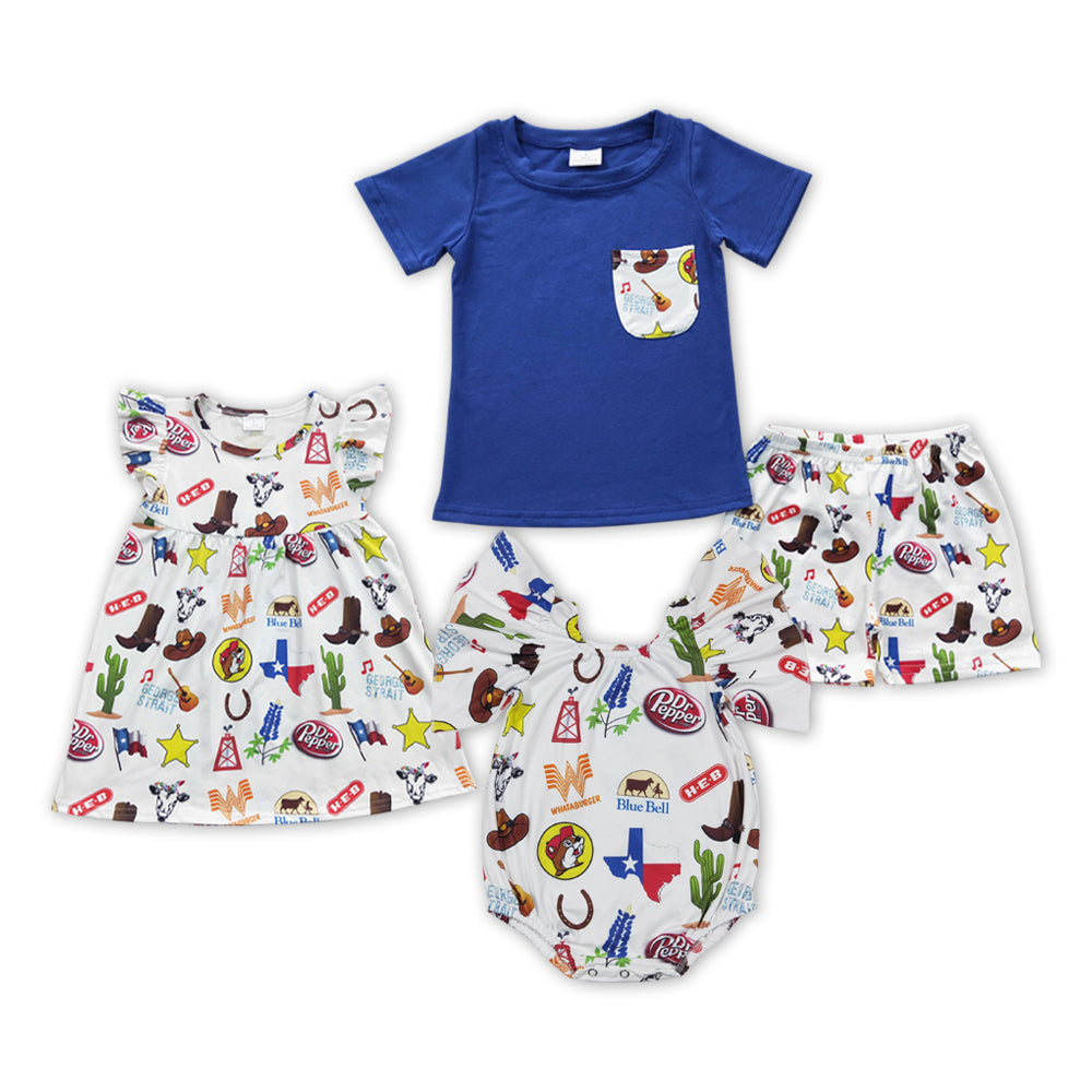 Baby Boys Girls Sibling Texas Print Dresses Outfits Romper Clothes Sets