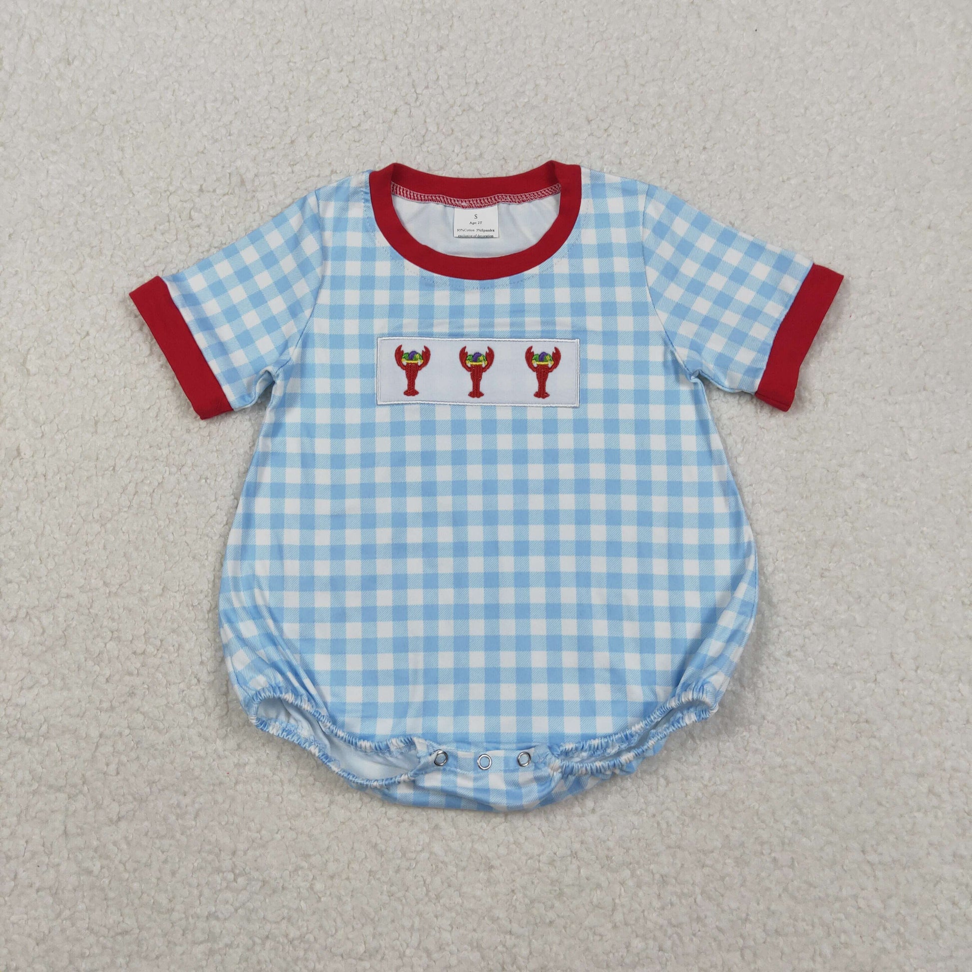 Baby Boys Mardi Gras Caryfish Blue Gingham Short Sleeve Bubble Romper