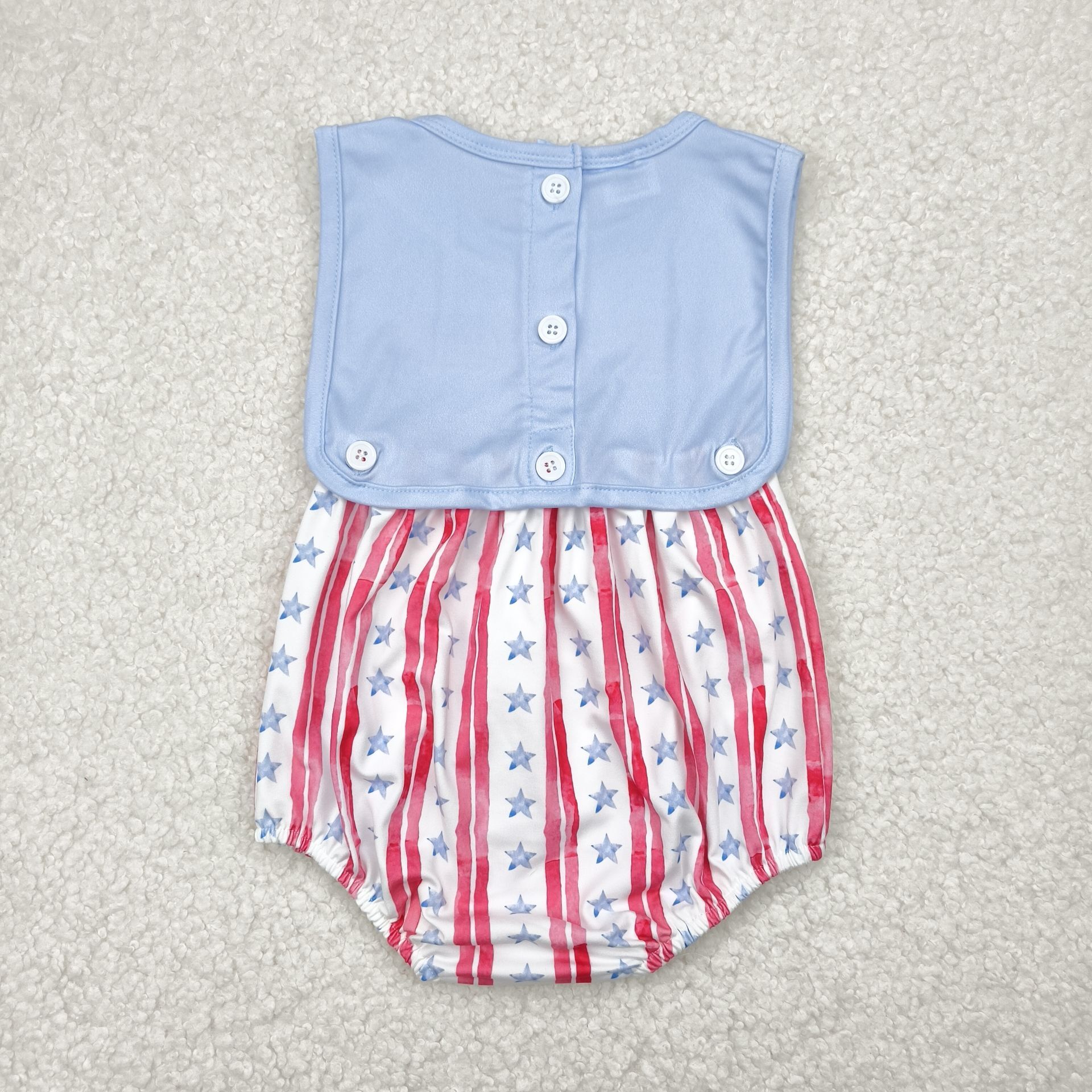 Baby Boys Sleeveless Flags Red Stripe Stars 4th Of July Rompers