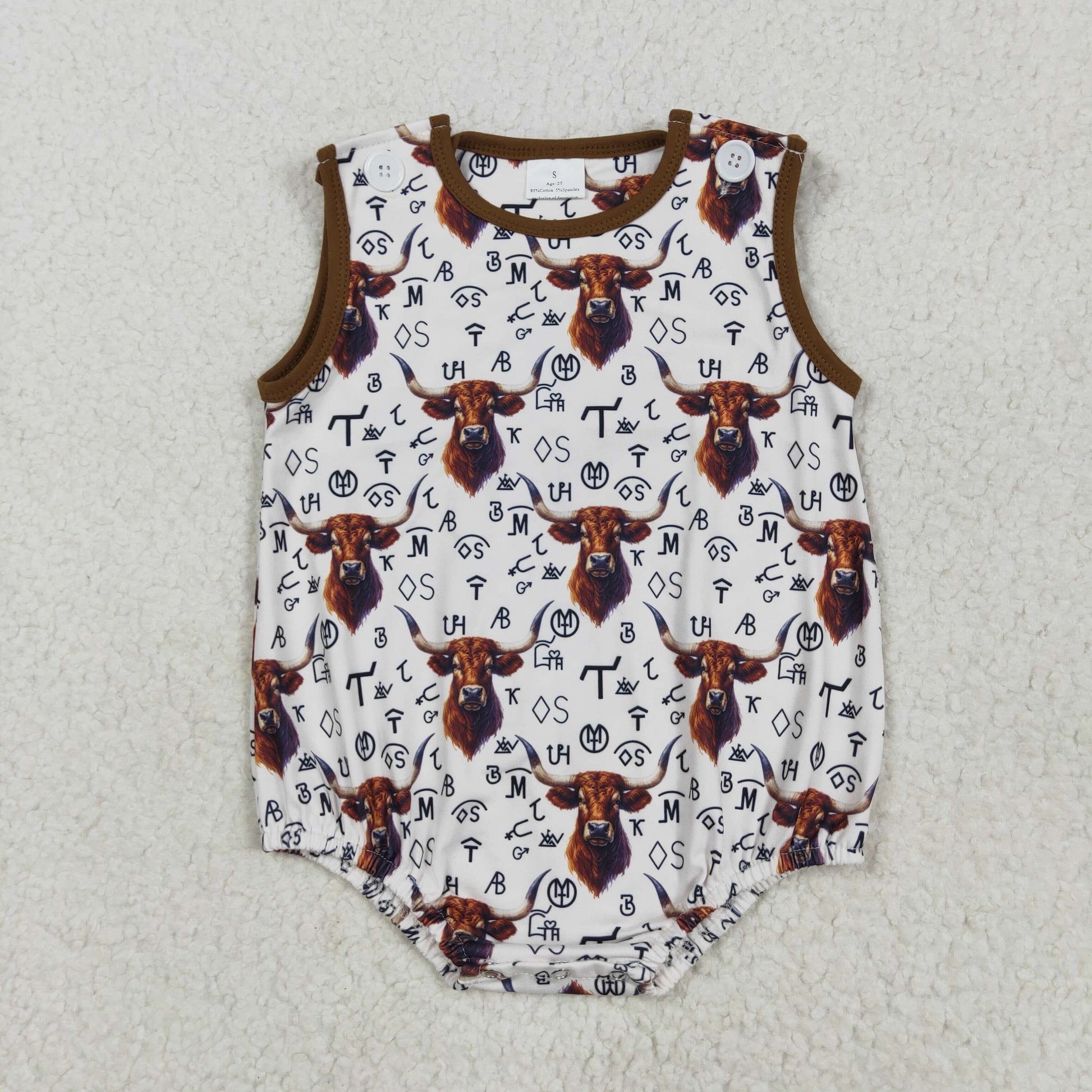 Baby Boys Sleeveless Highland Cows Letter Western Rompers