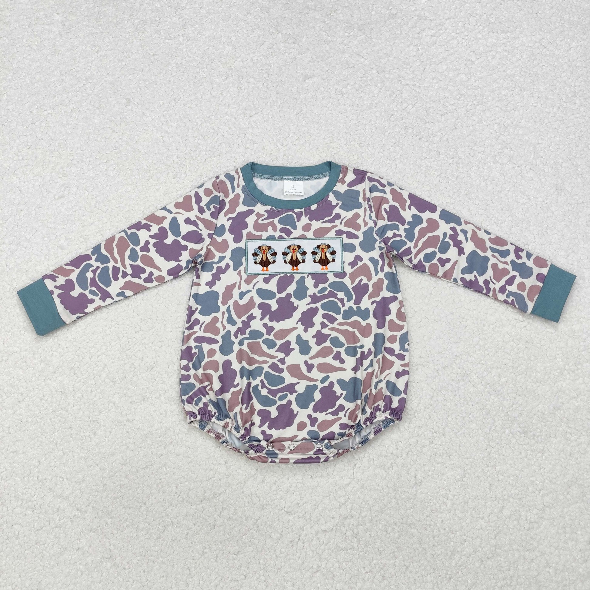 Baby Boys Thanksgiving Camo Turkey Long Sleeve Romper