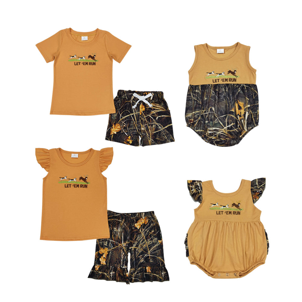 Baby Girls Boys Dog Hunting Deer Sibling Camo Shorts Clothes Sets