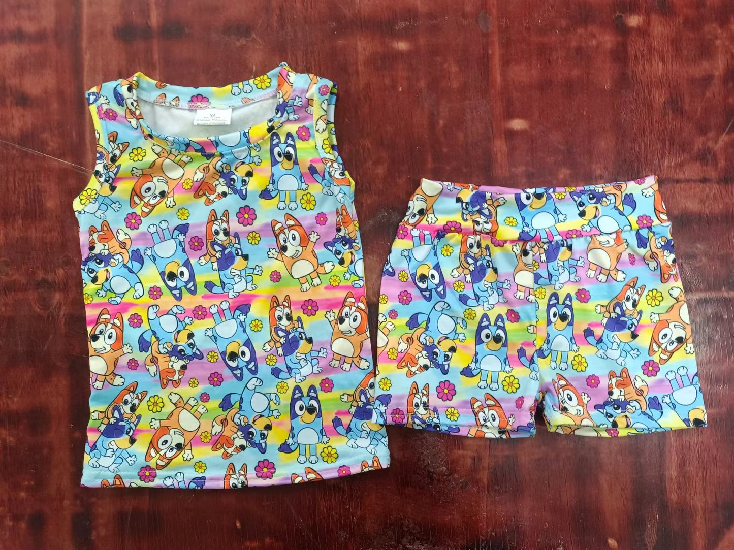 Baby Girls Cartoon Dog Tank and Shorts Set Pre-order 3 MOQ