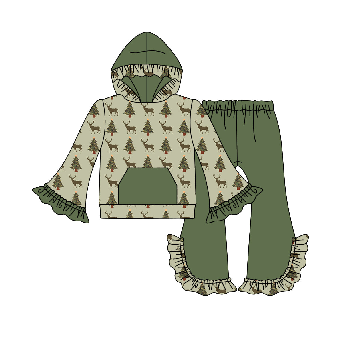 Baby Girls Christmas Tree Hoodie Top Pants Set 3 MOQ