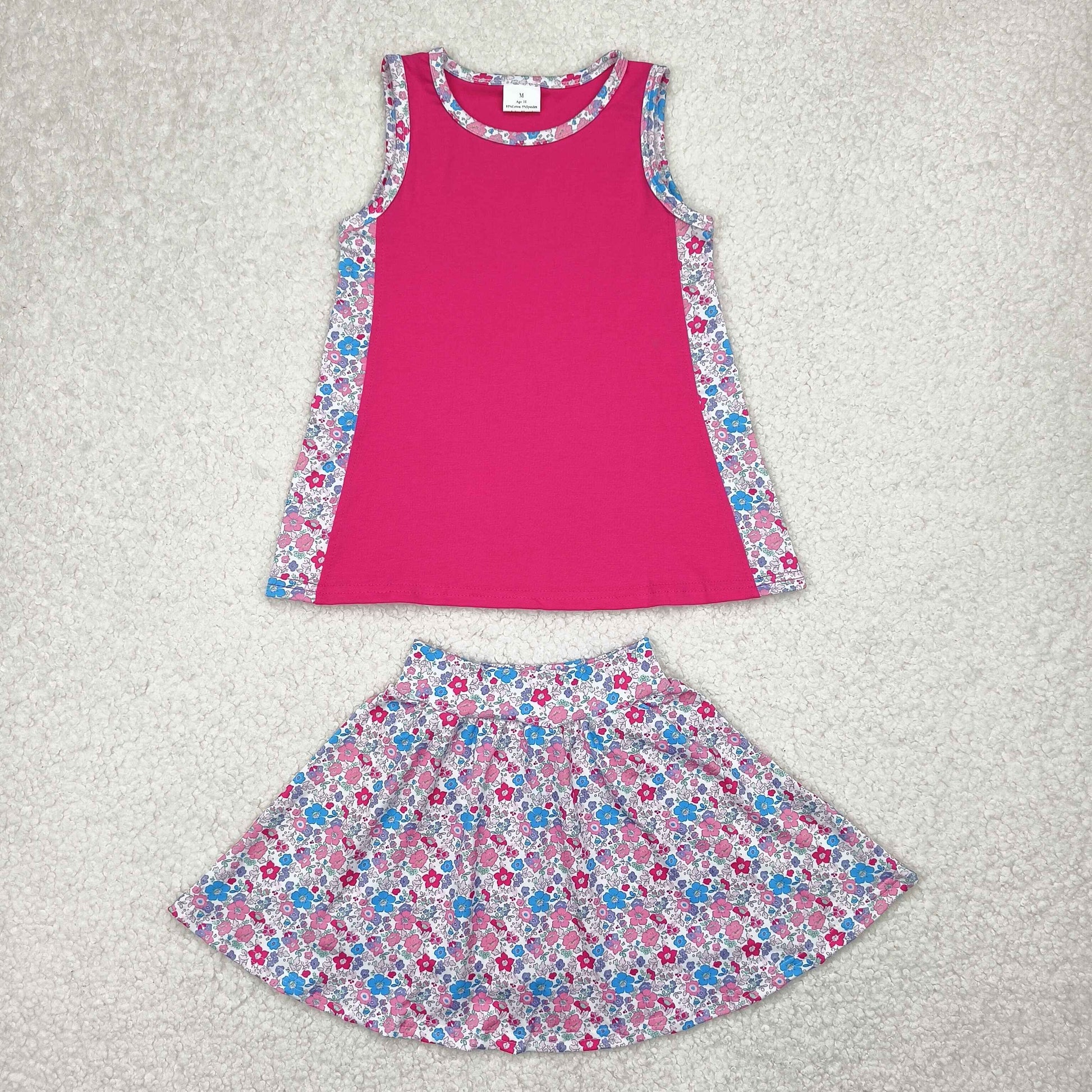 Baby Girls Hot Pink Sleeveless Top Floral Skirts Set