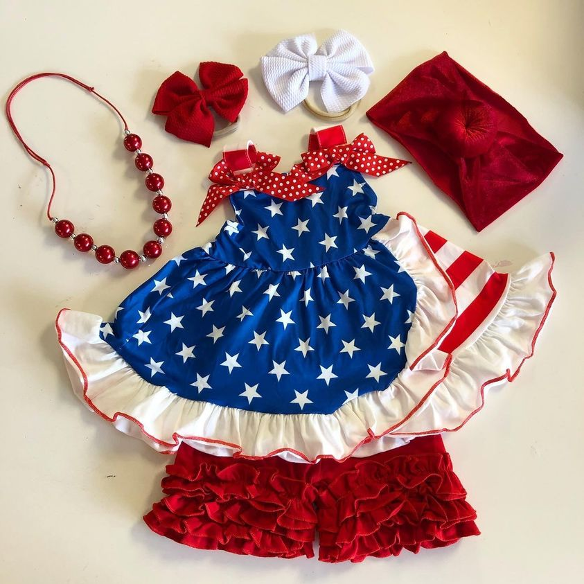 Baby Girls July 4th Patriotic Red Shorts Outfit