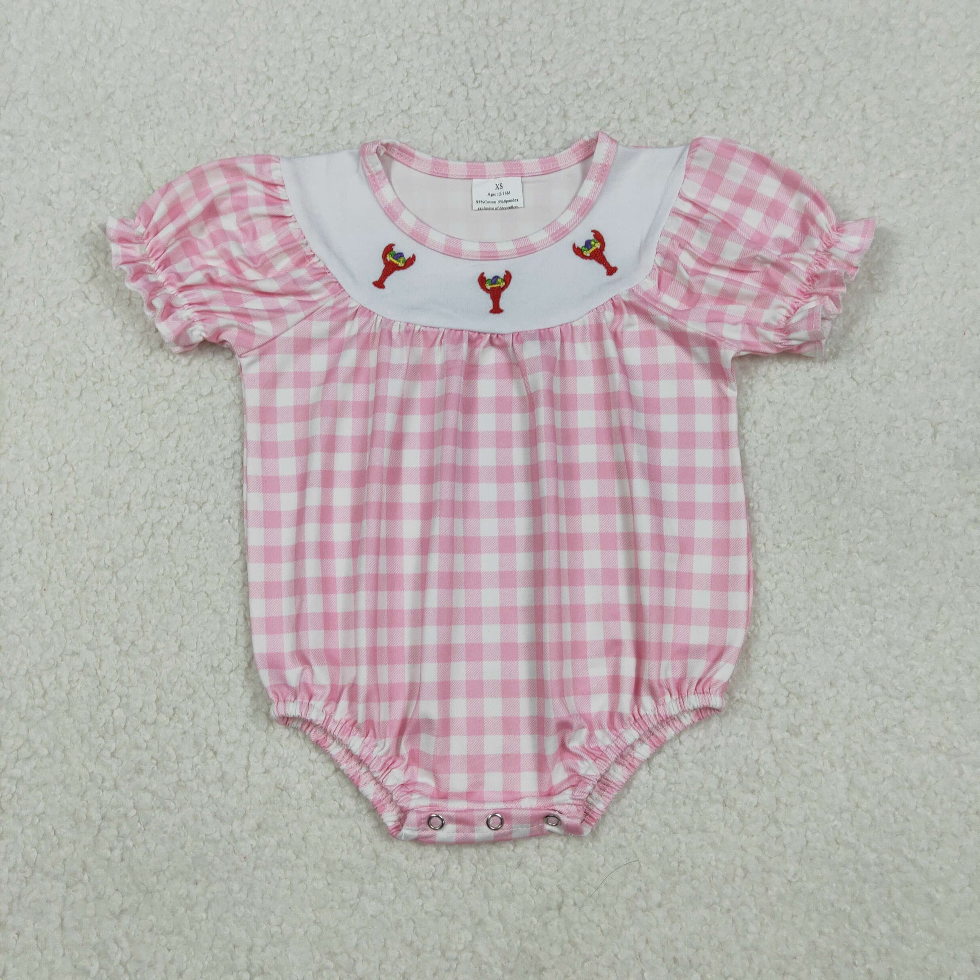 Baby Girls Mardi Gras Caryfish Pink Gingham Short Sleeve Bubble Romper