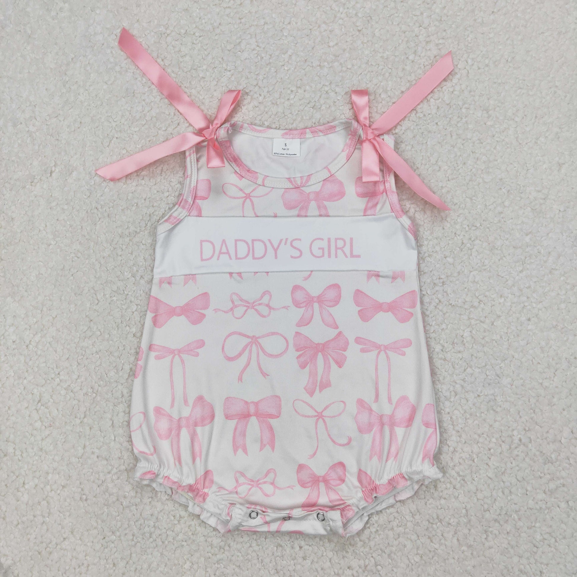 Baby Girls Pink Sleeveless Bows DADDYS GIRL Rompers