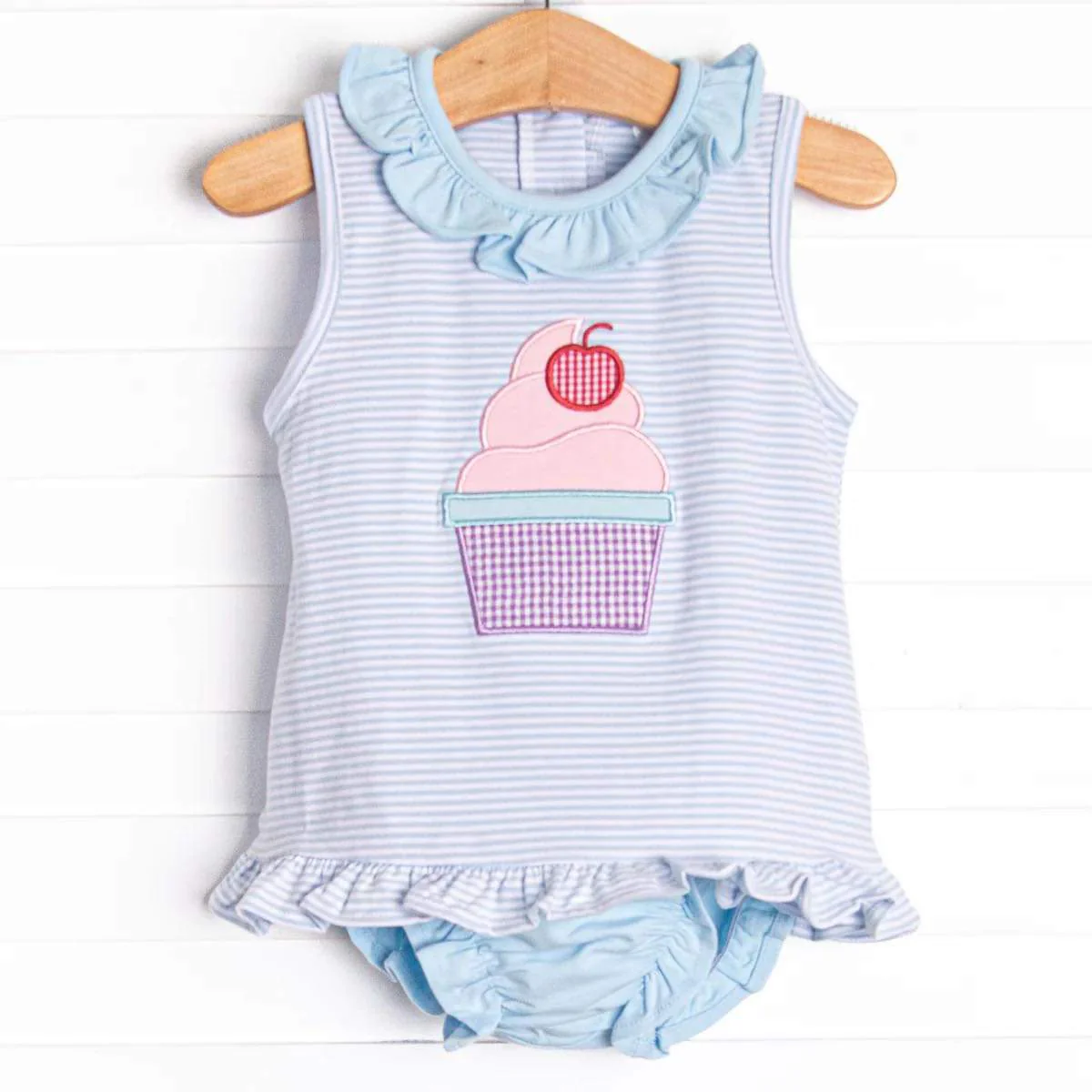 Baby Girls Summer Cherry Cake Bummie Set 3MOQ