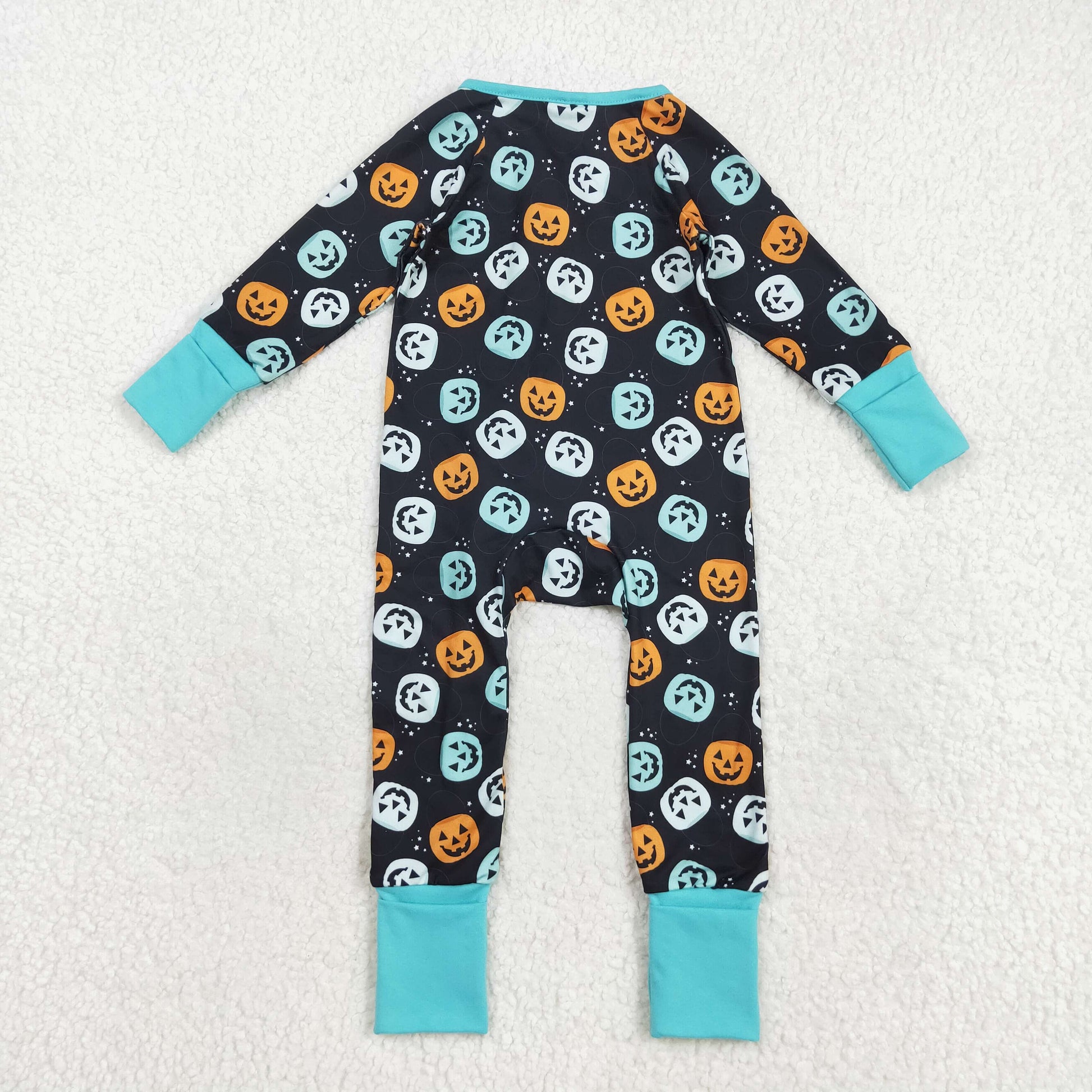 Baby Halloween Pumpkin Long Sleeve Footed Romper With Zippy