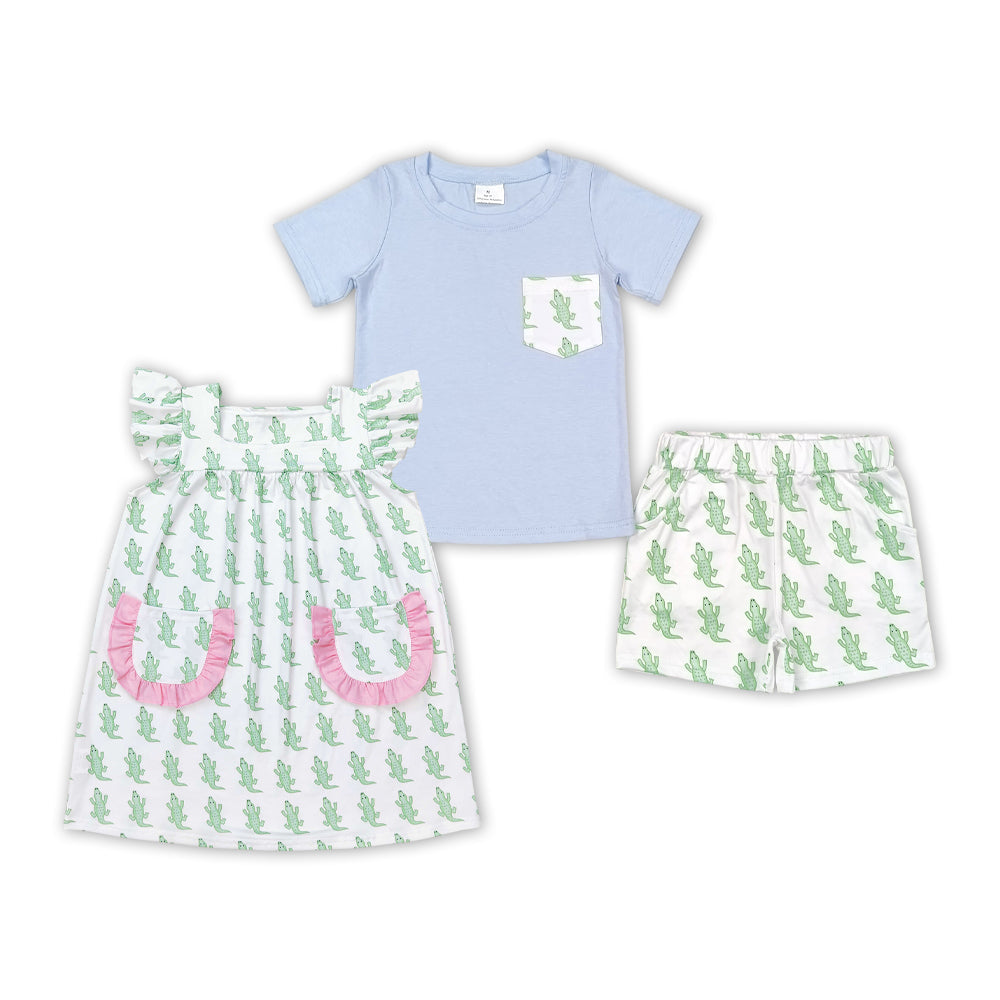 Baby Sibling Summer Crocodile Print Outfit and Dress