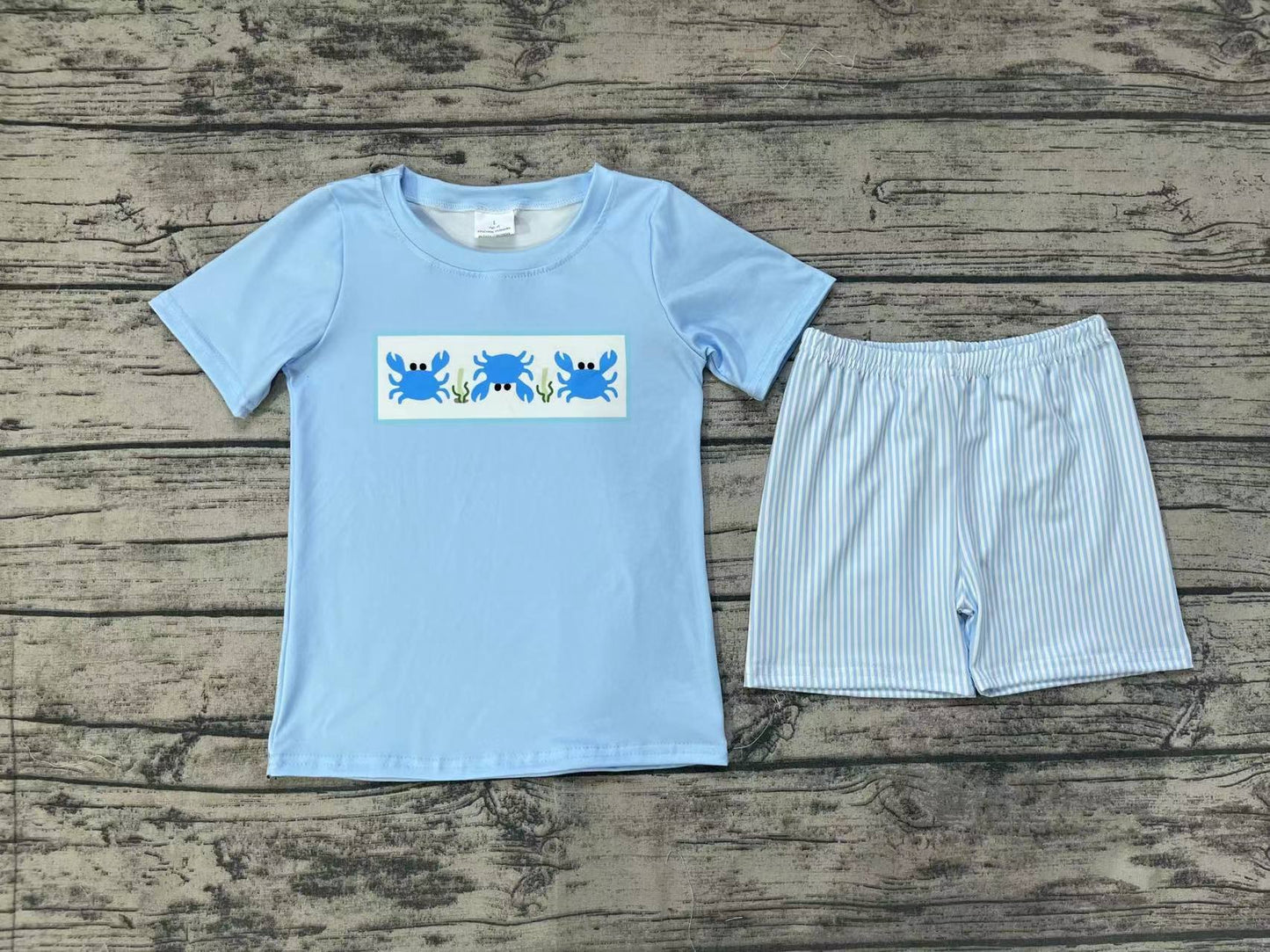 Baby boy clothes Crab blue stripes toddler boy summer outfits