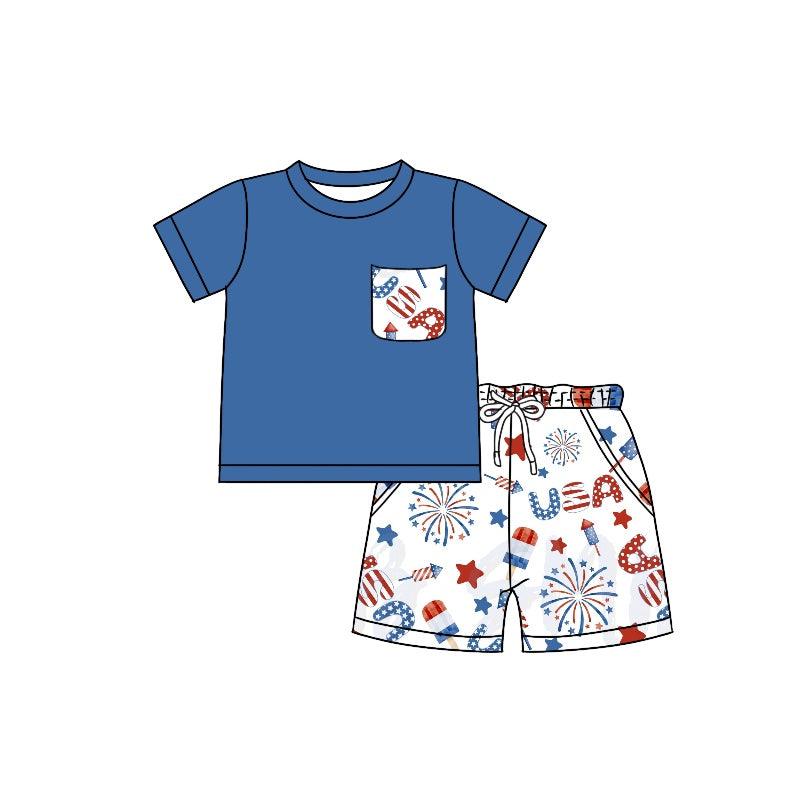 BSSO0766 pre-order baby boy clothes 4th of July patriotic toddler boy summer outfits