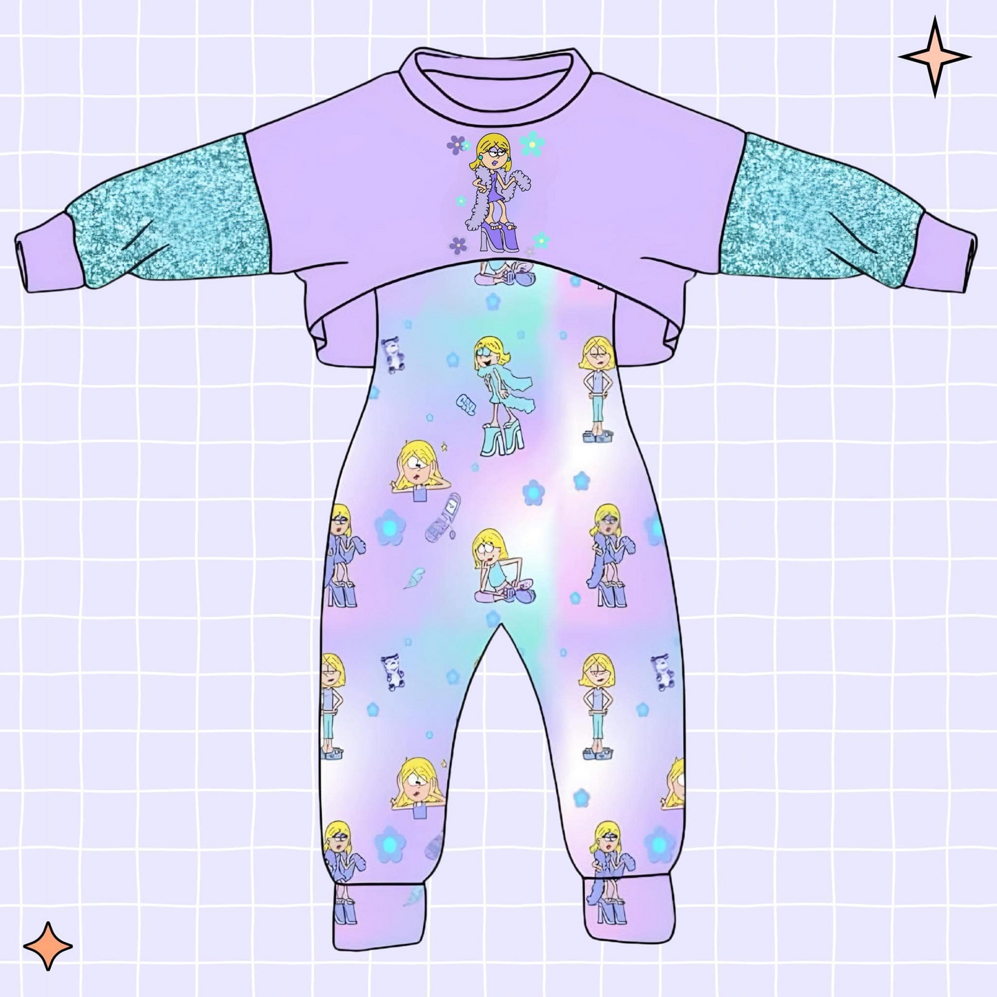 Cartoon Baby Girls Purple Top Jumpsuit Set Pre-order 3 MOQ
