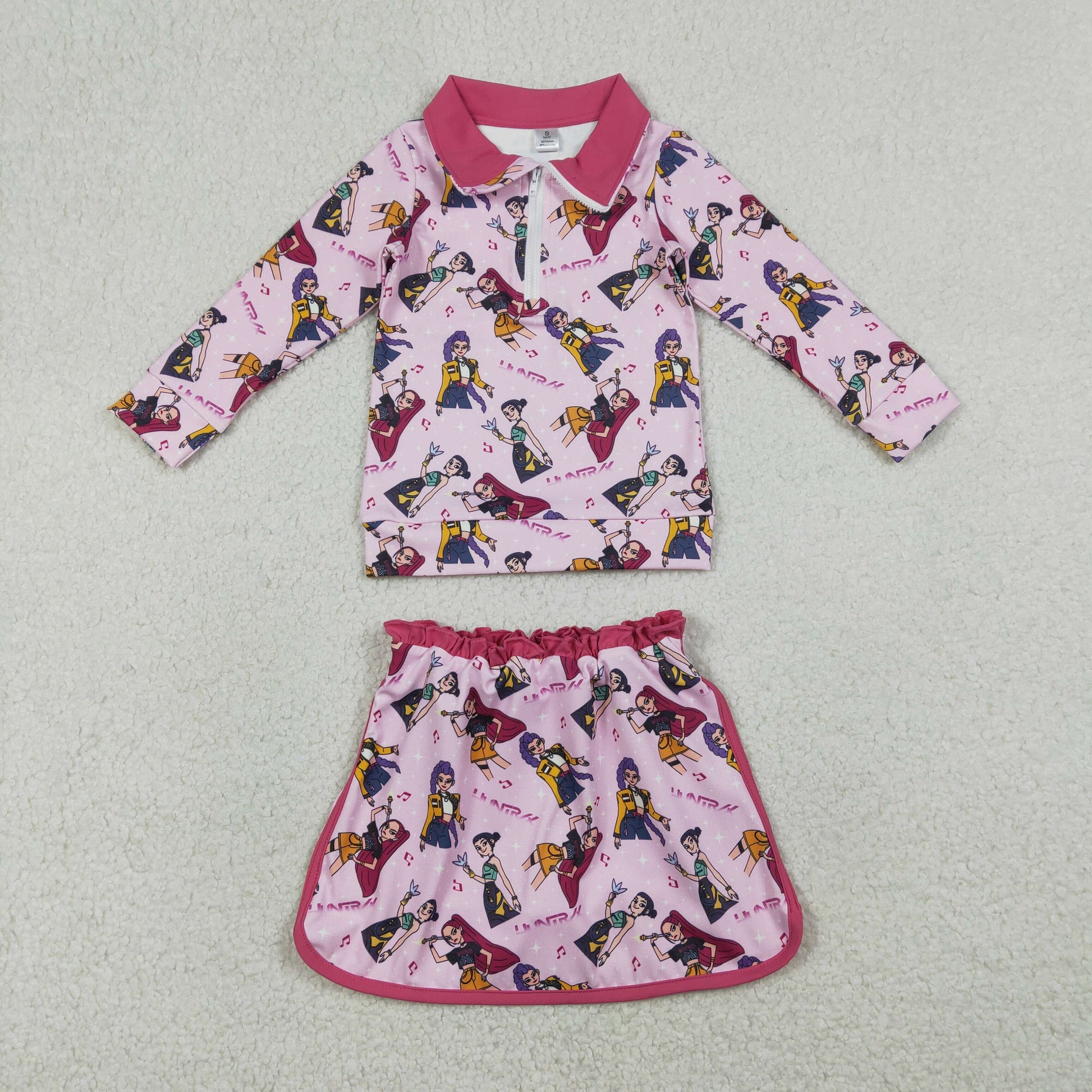 GLD1500 Kids Cartoon Girls Kpop Active Skort Set