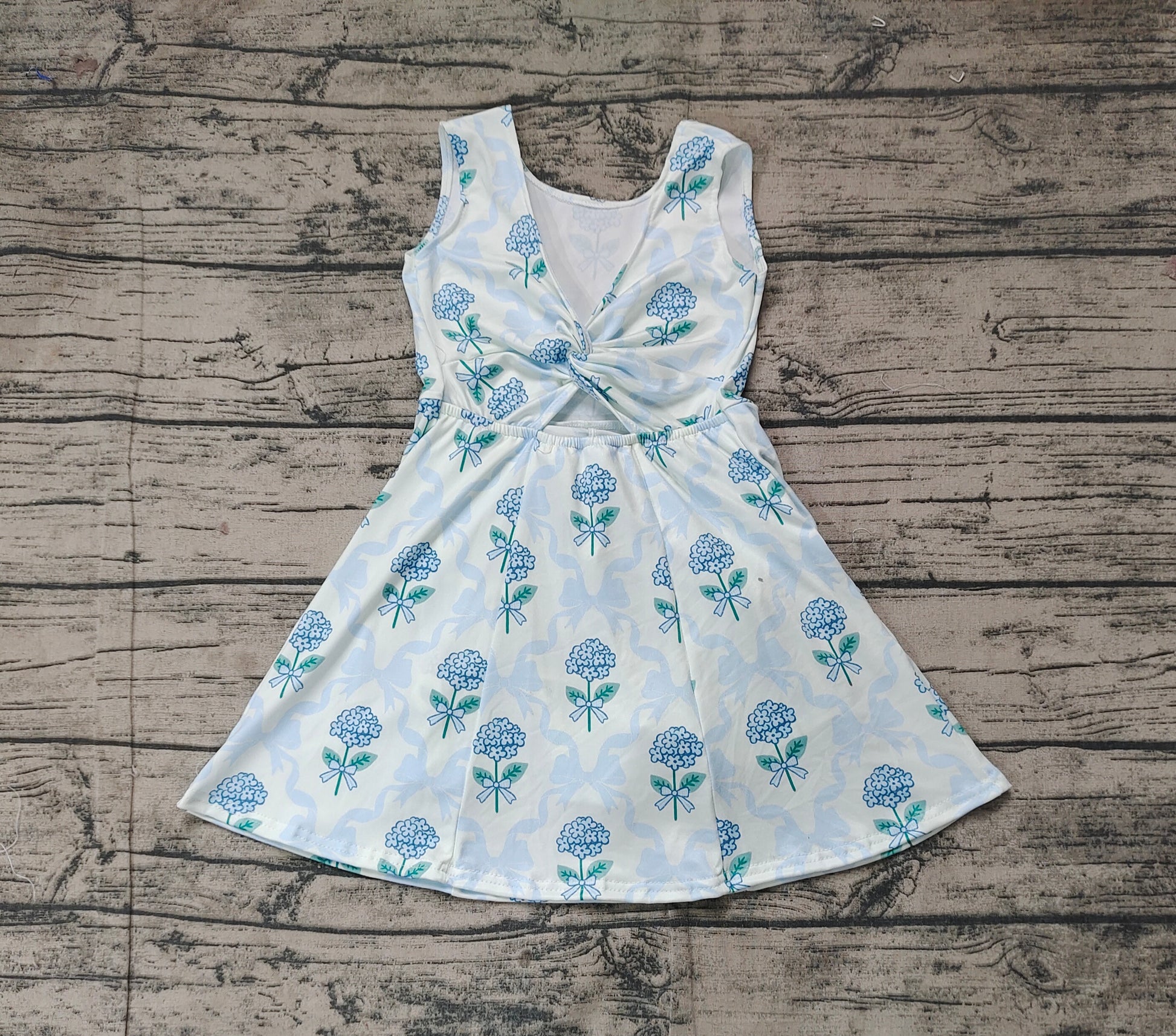 Baby Girls Aqua Sleeveless Bows Floral Plaid Valentines Yoga Dress Preorder