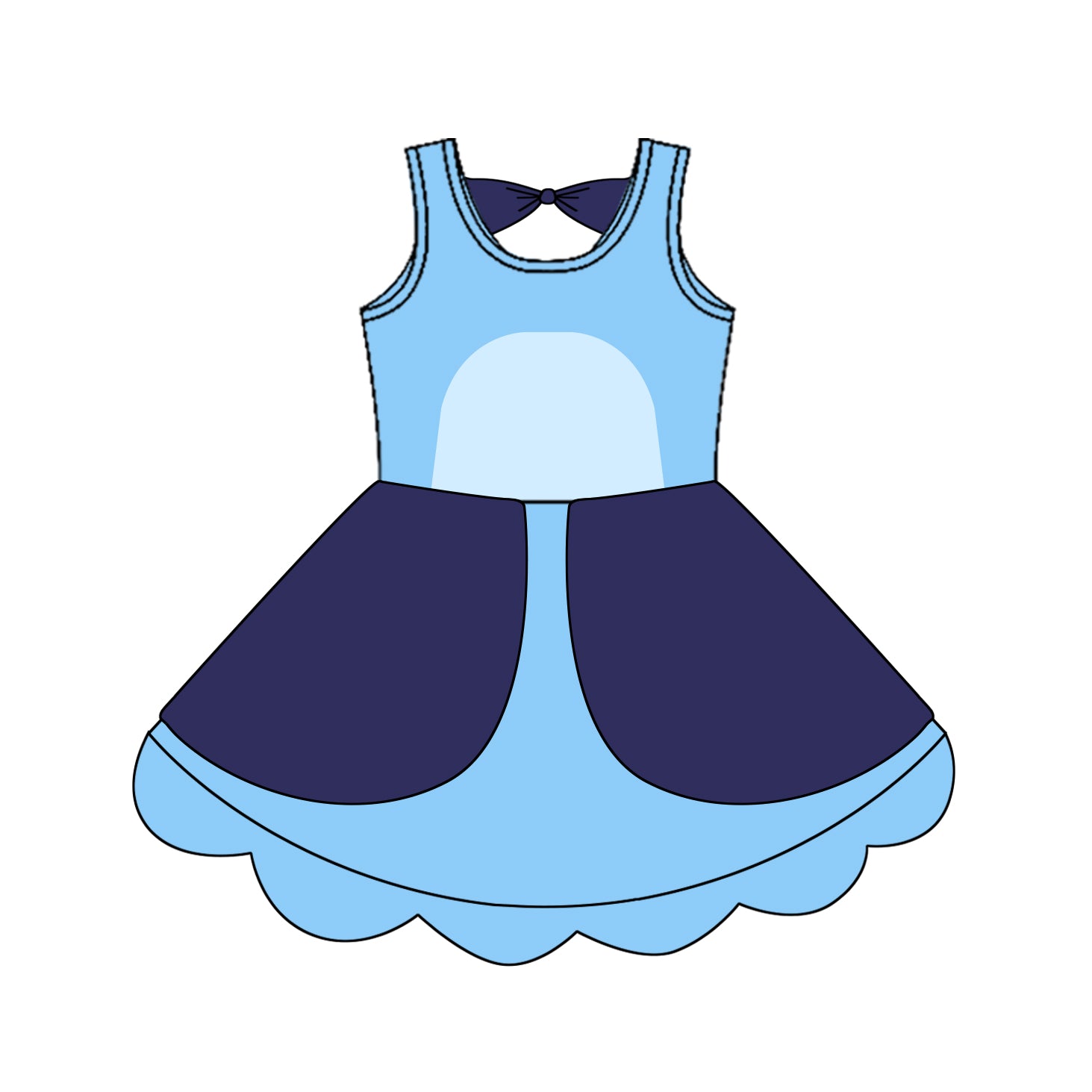 GSD2515 Kids Girls Blue Cartoon Dog Dress Preorder