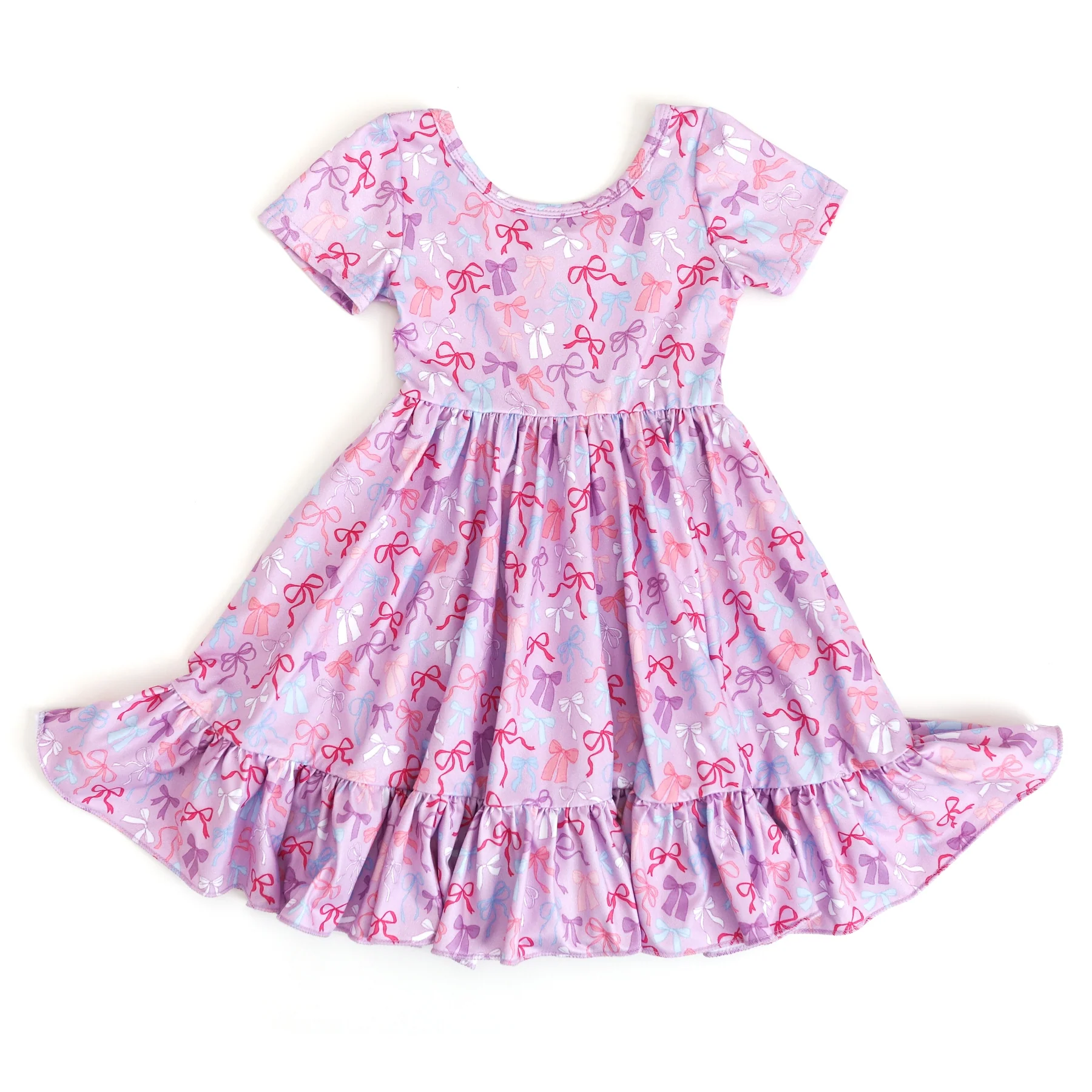 GSD2607 Kids Girls Purple Bow Short Short Dress Preorder