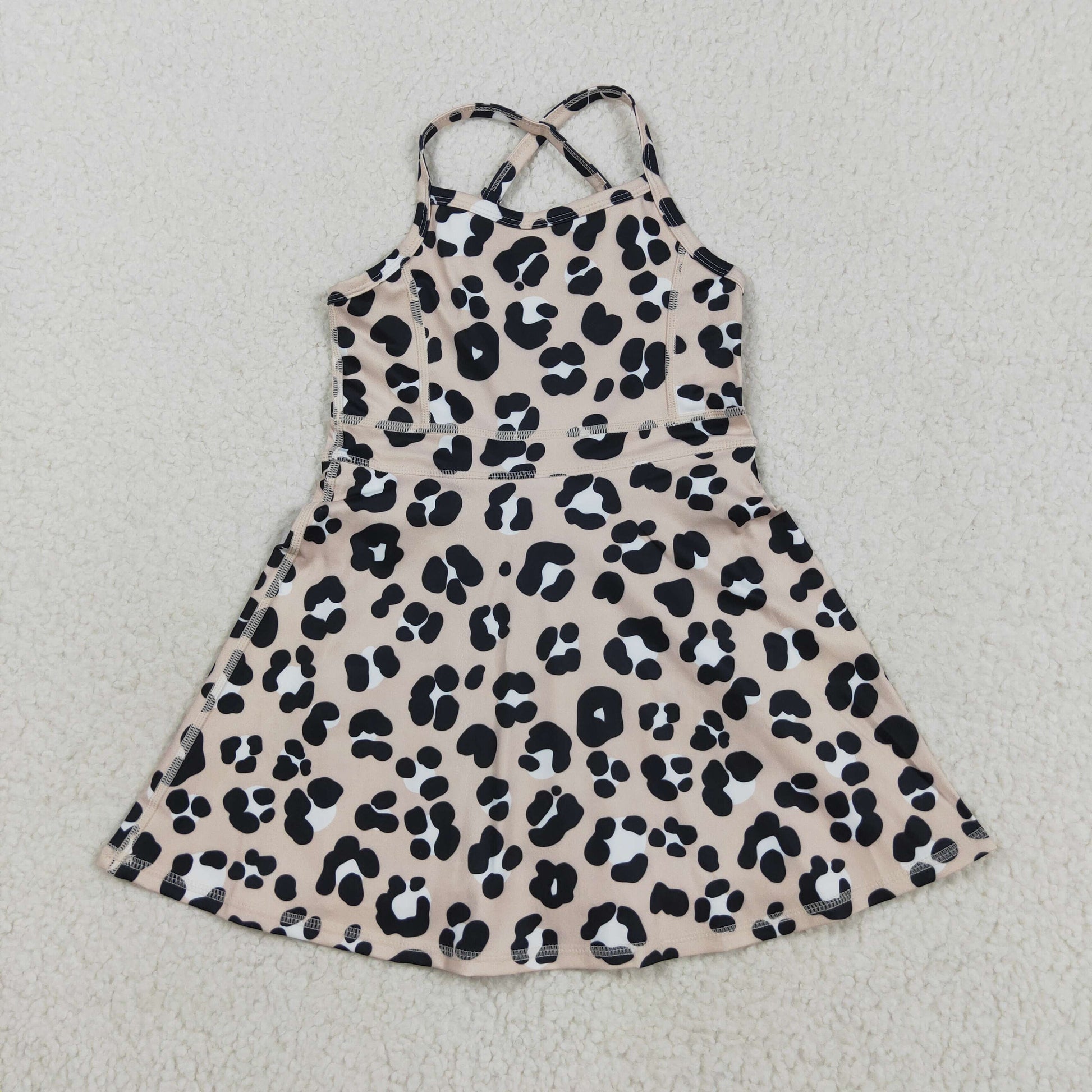 GSD2650 Baby Girls Black Leopard Strpe Yoga Dress