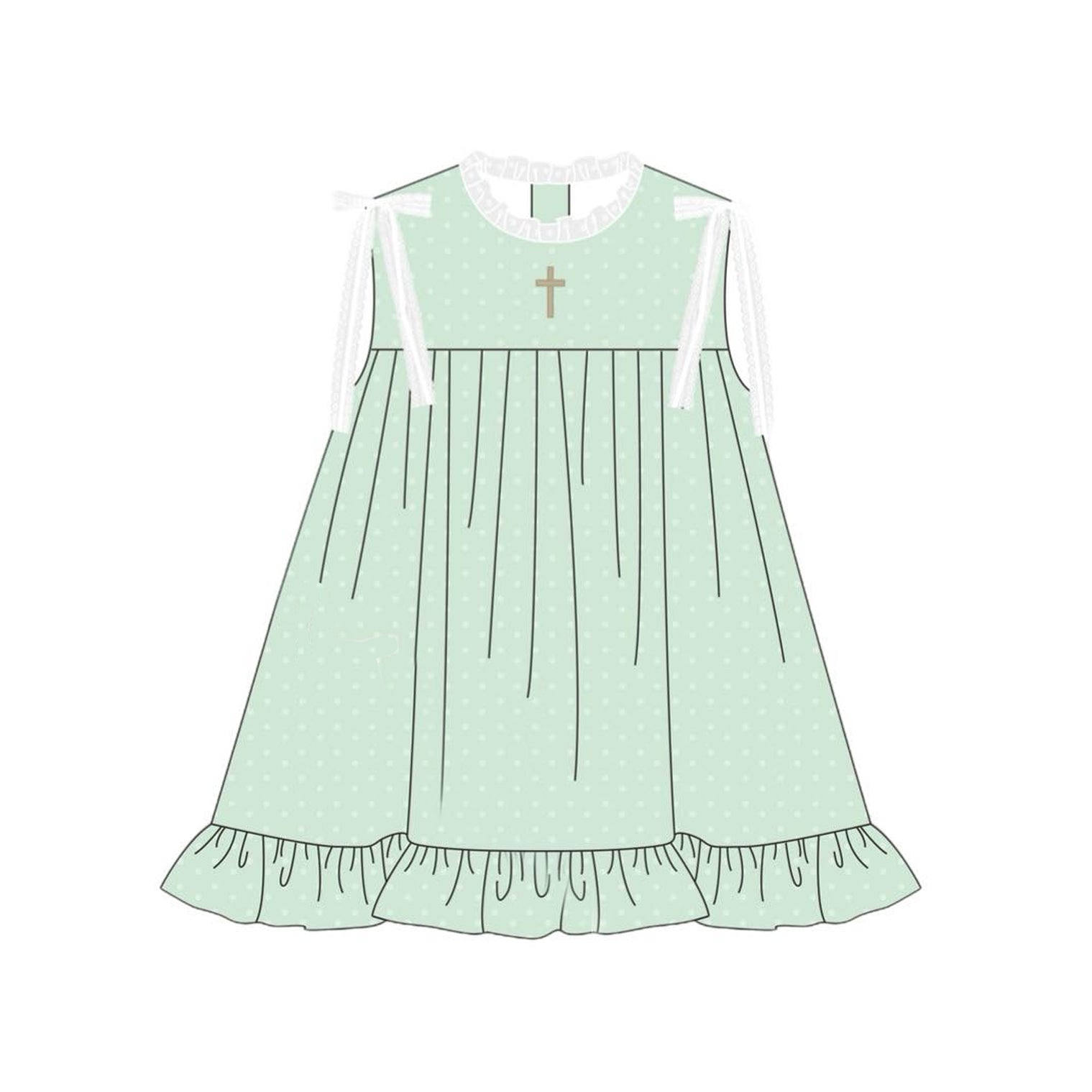 GSD2860 Baby Girls Green Polka Dot Cross Sleeveless Dress Preorder