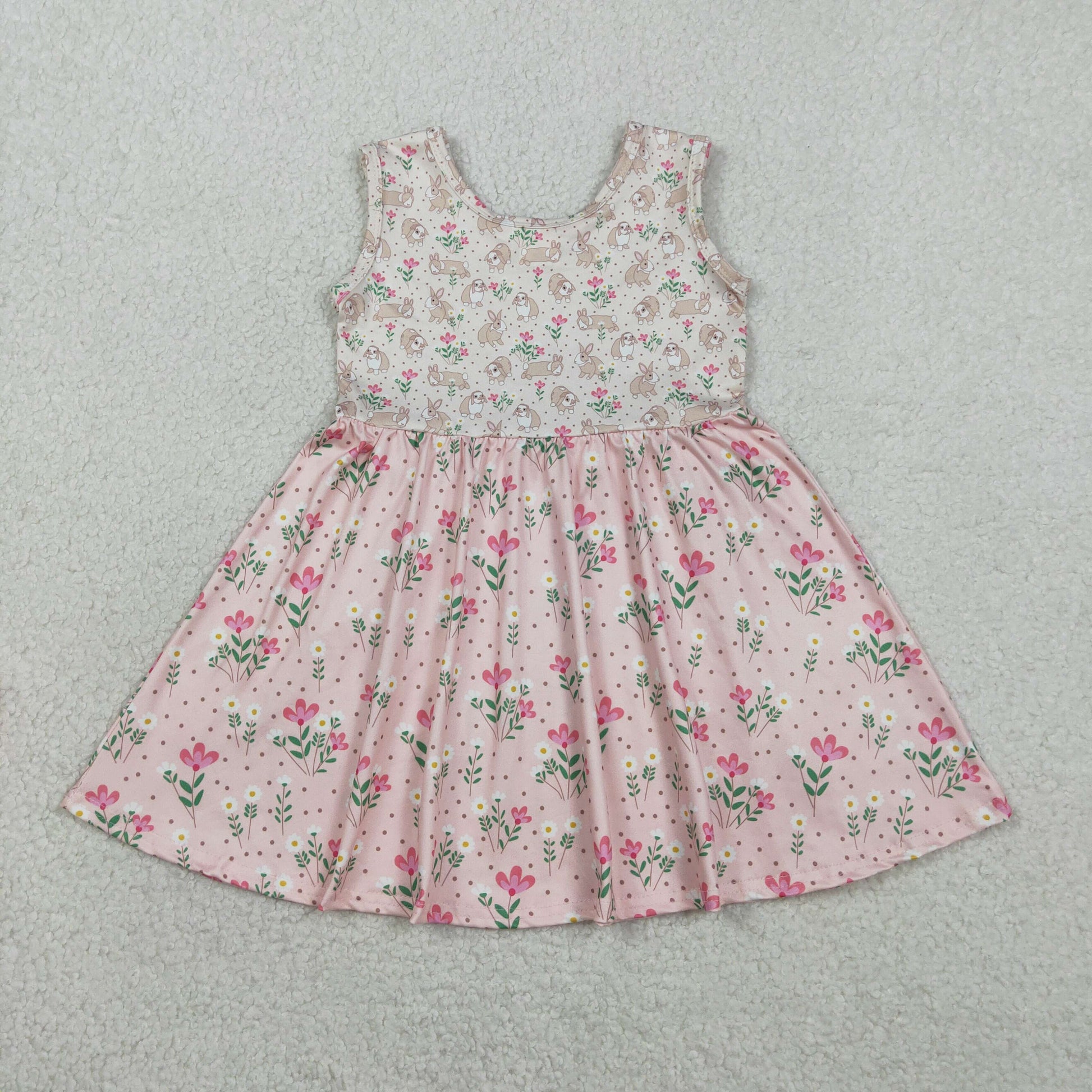 GSD2984 Baby Girls Bunny Flowers Sleeveless Dress