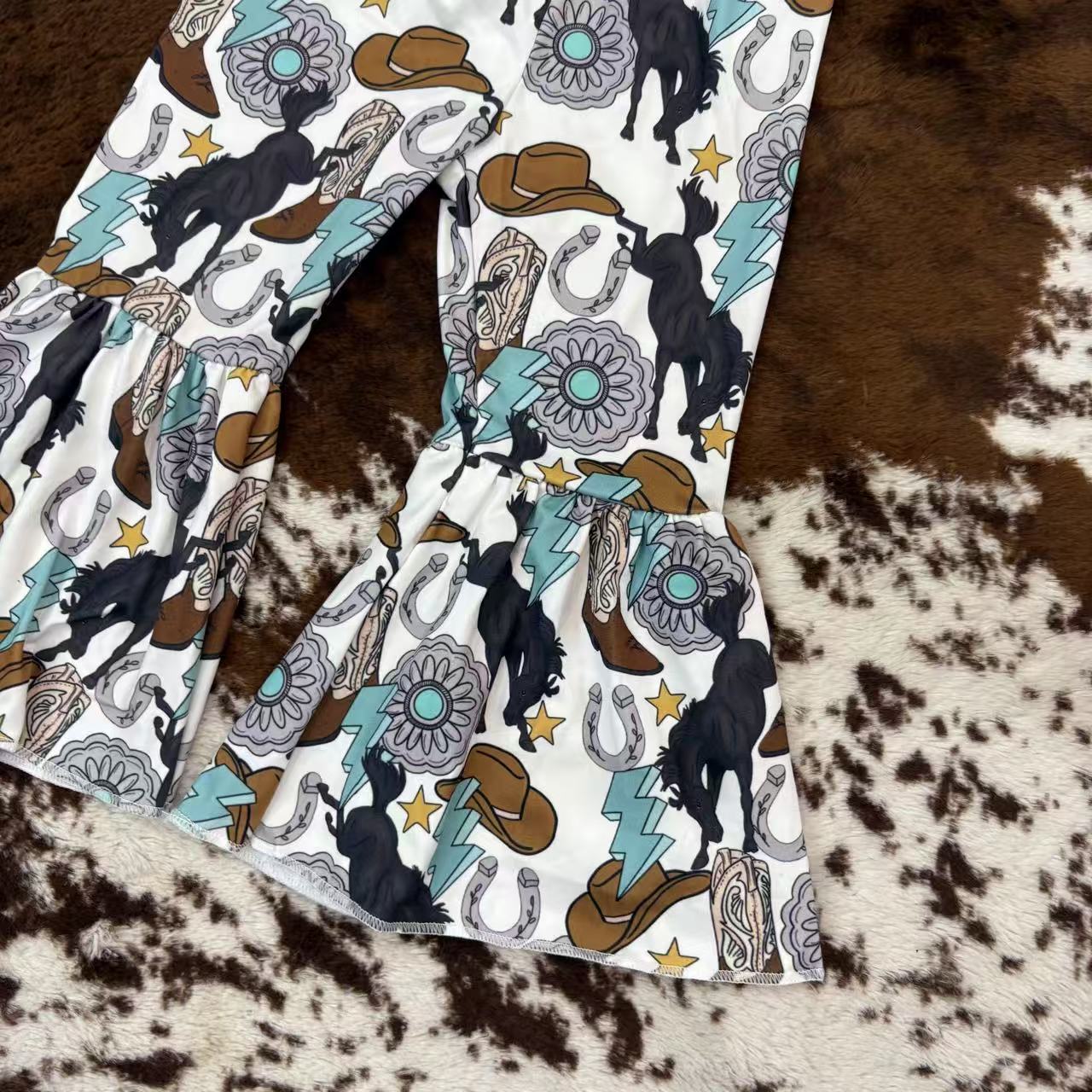 USA Shop Kids Girls Western Horse Bell Bottom Pants Outfit