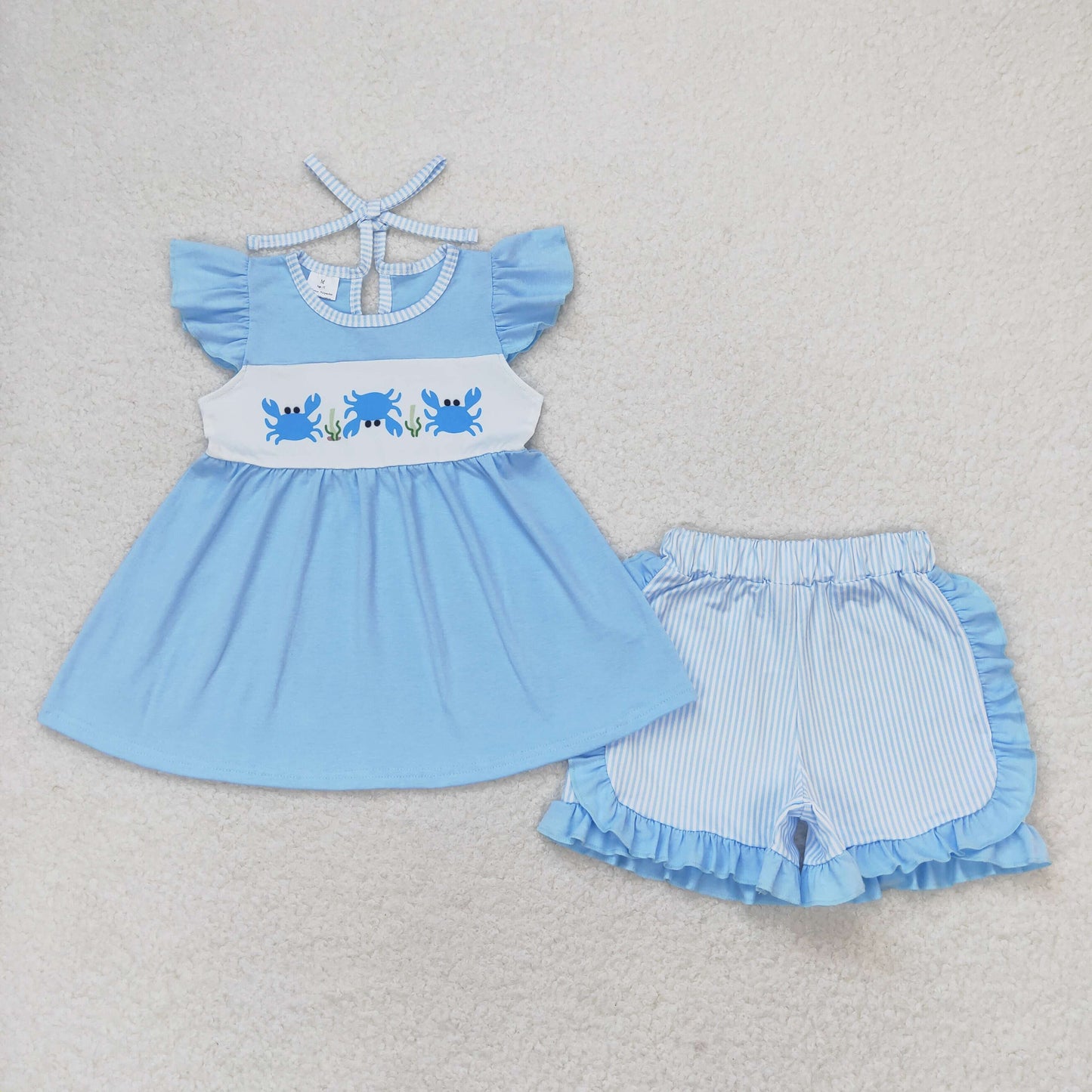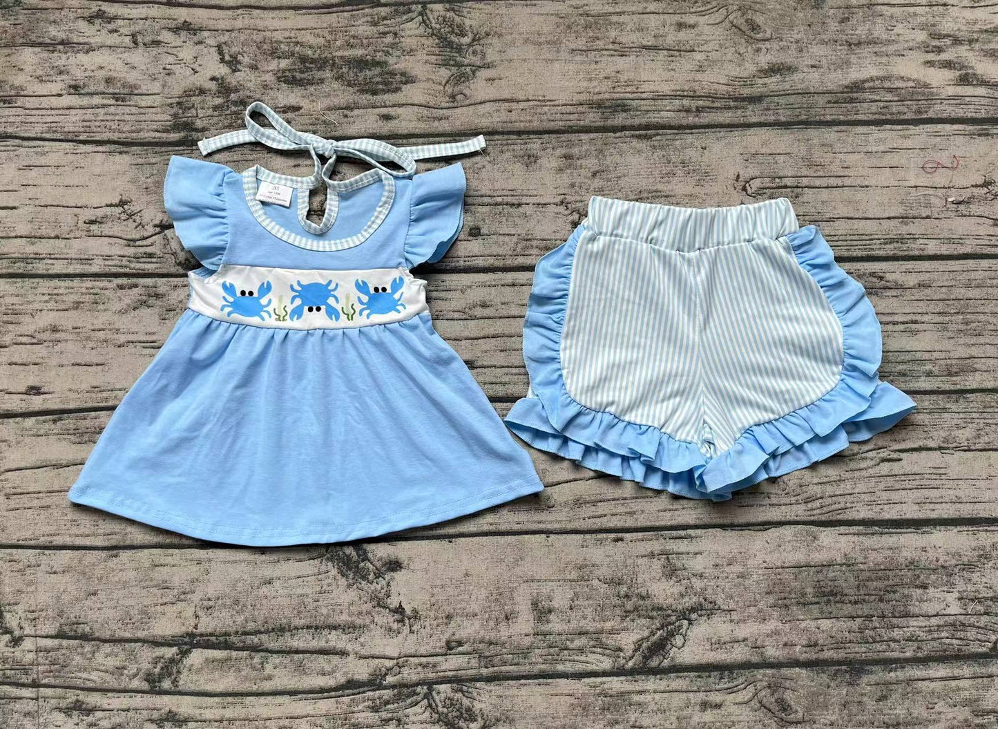 Baby girl clothes crab blue stripes toddler girl summer outfit