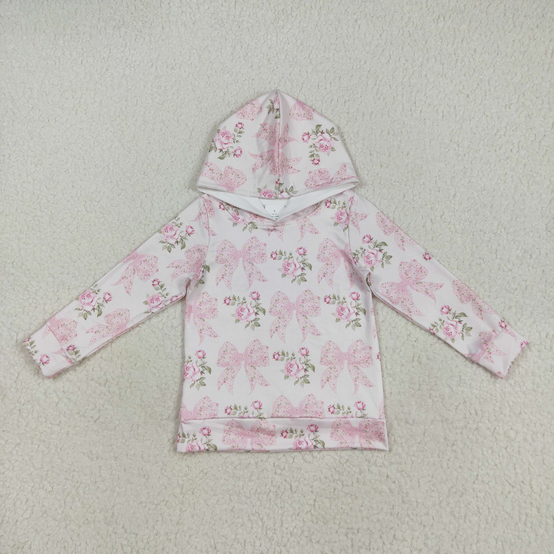 GT1058 Kids Girls Pink Bow Flowers Hoodie Top