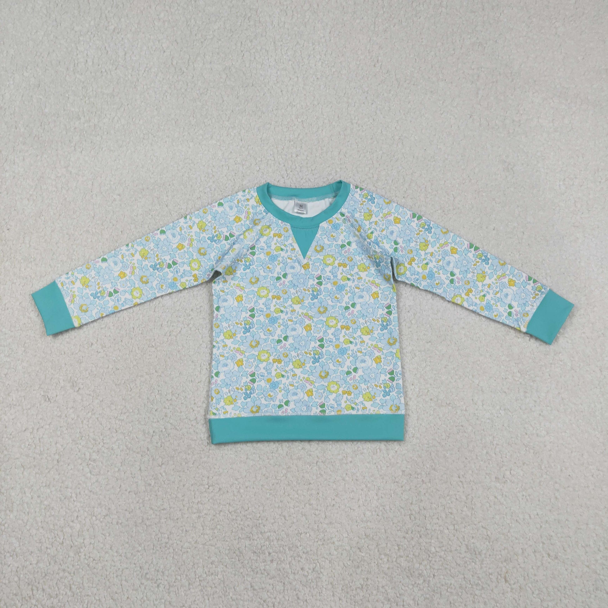 GT1294 Kids Girls Blue Flowers Long Sleeve Yoga Top