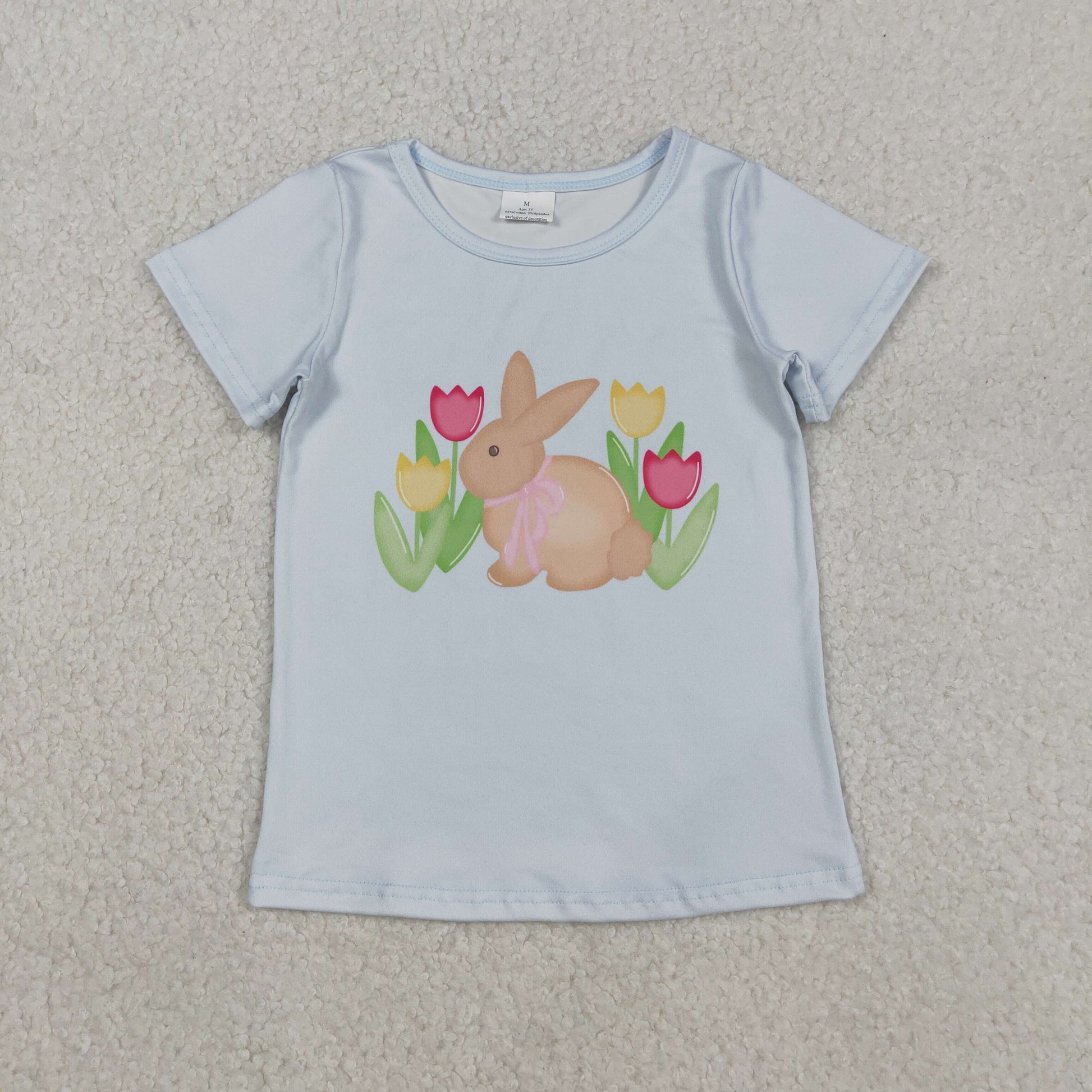 Baby Girls Easter Bunny Flowers Short Sleeve T-shirt Top