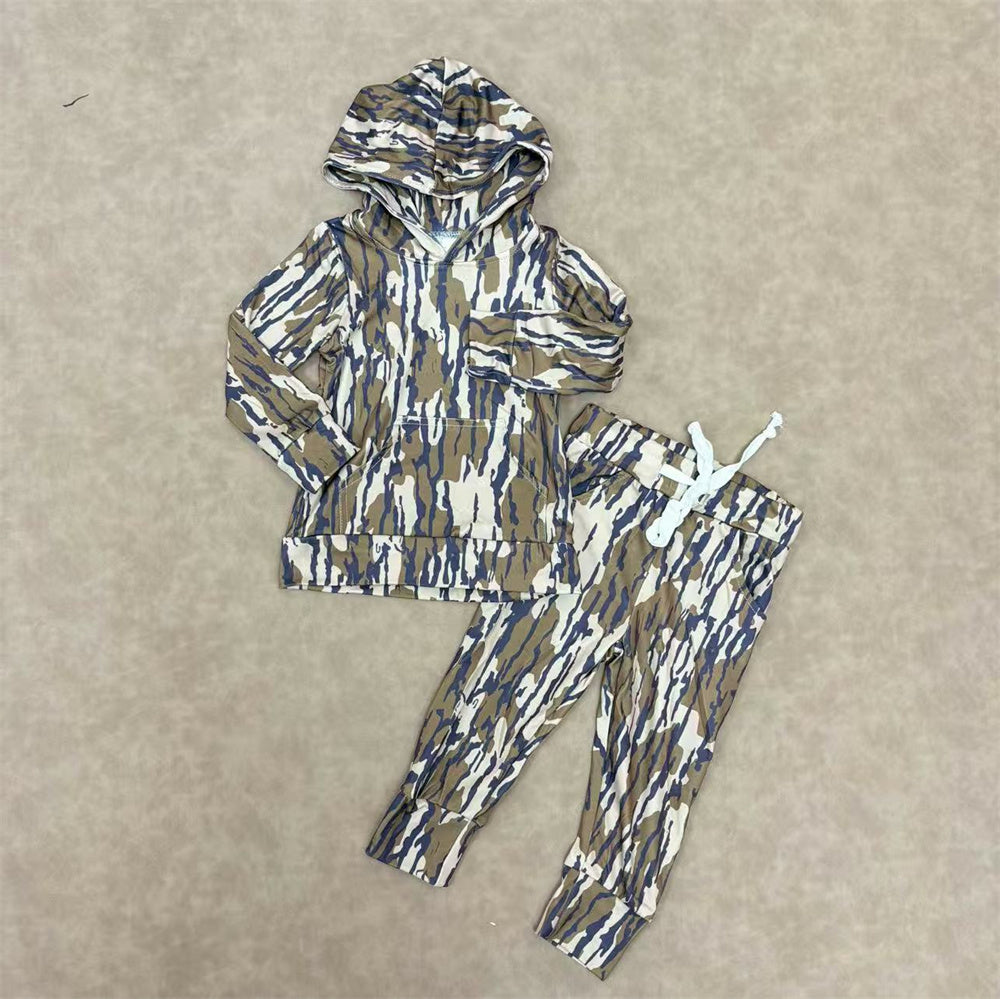 Kids Boys Bottonland Camo Long Sleeve Hoodie Top Jogger Set