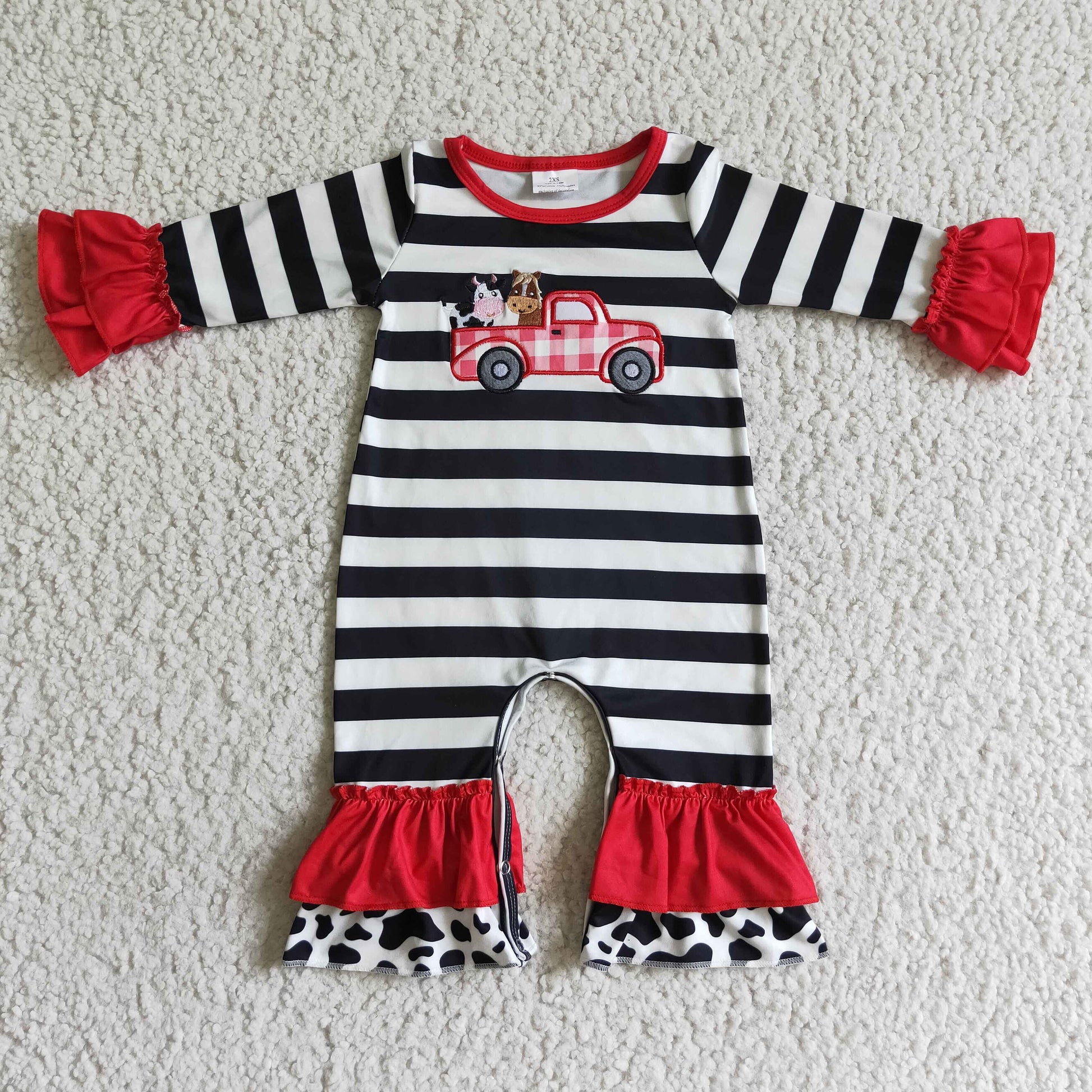USA Shop Baby Girls Baby girls farm tractor stripe ruffle rompers