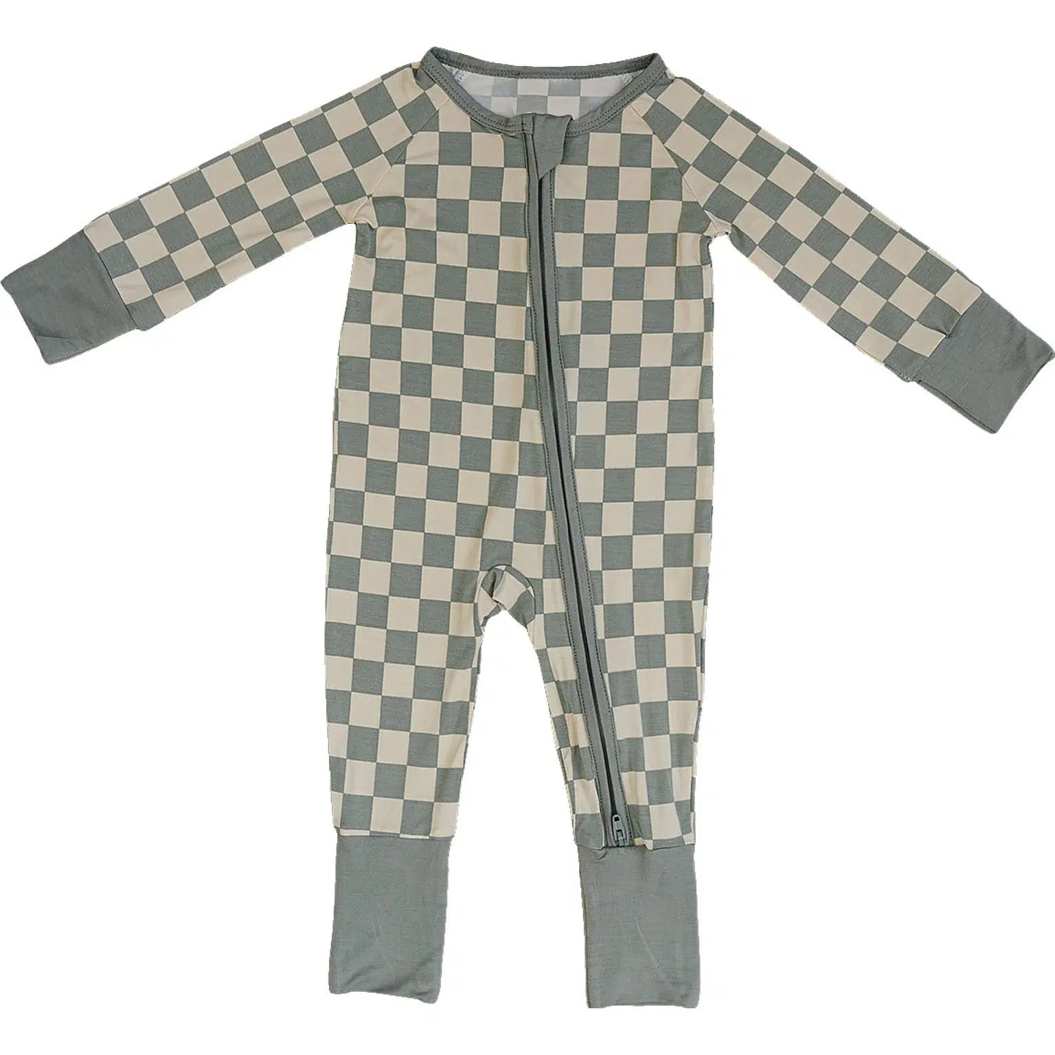 LR1602 Newborn Baby Boys Green Checker Long Sleeve Zip Romper Pre-order