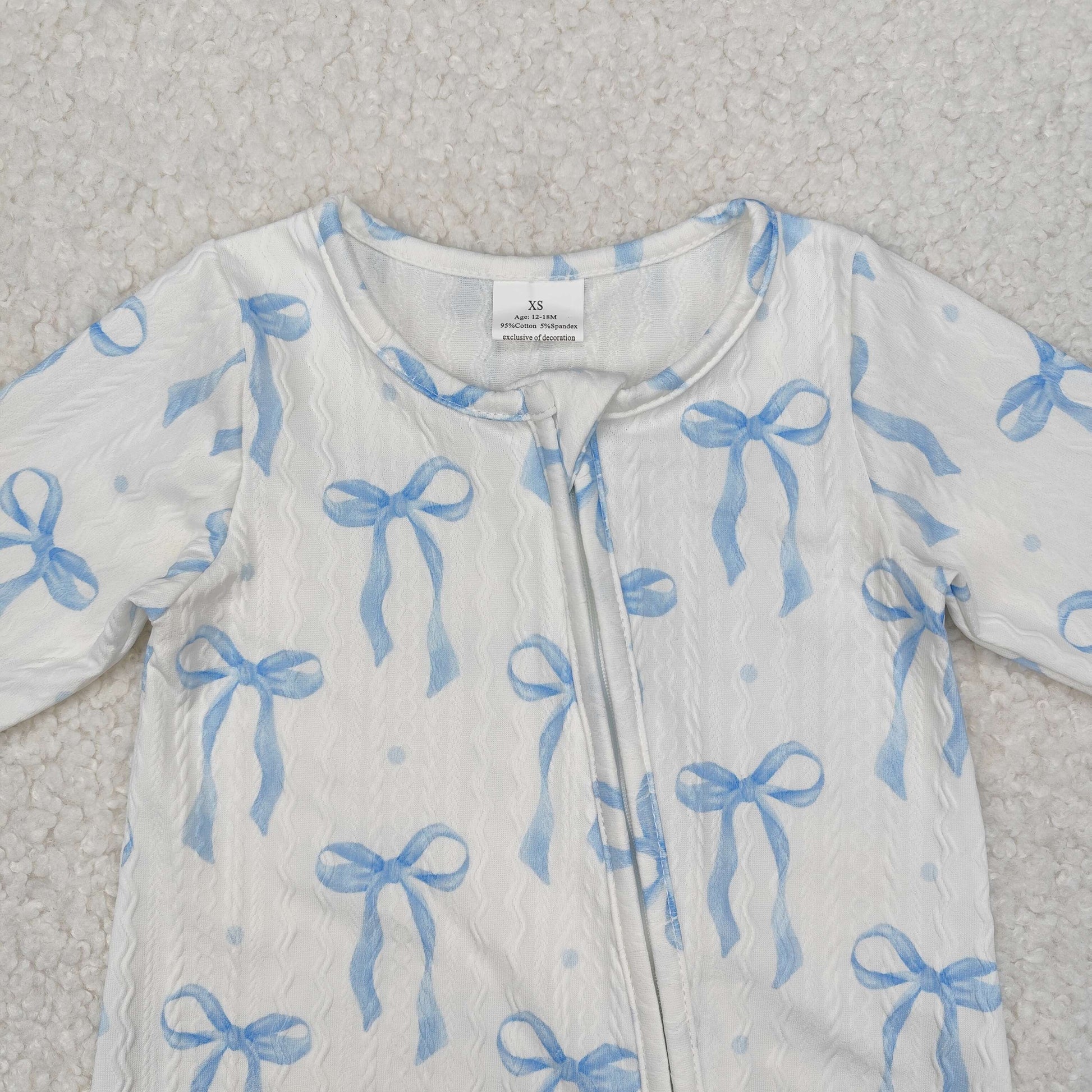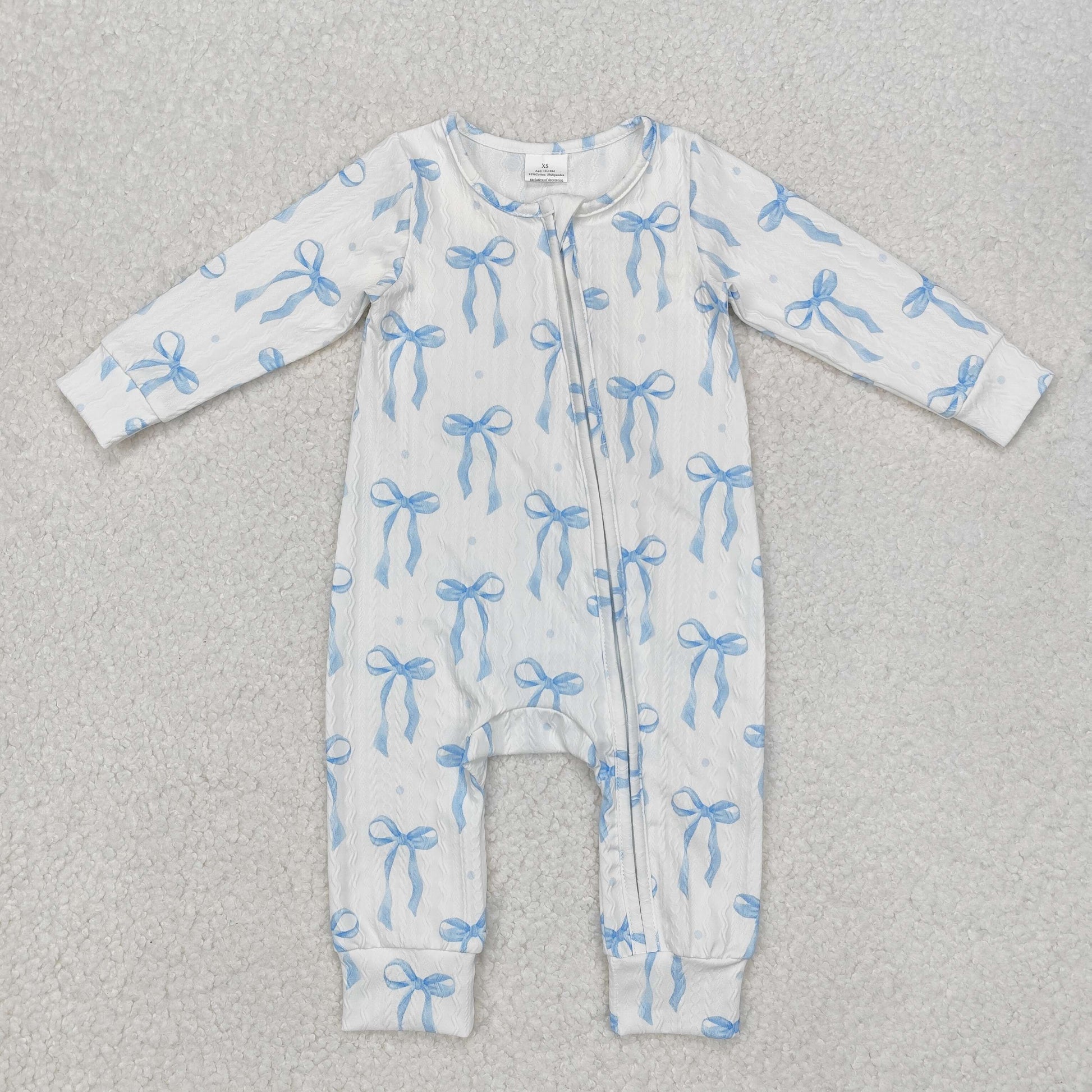 Baby Girls Long Sleeves Blue Bow Print Zipper Valentines Romper
