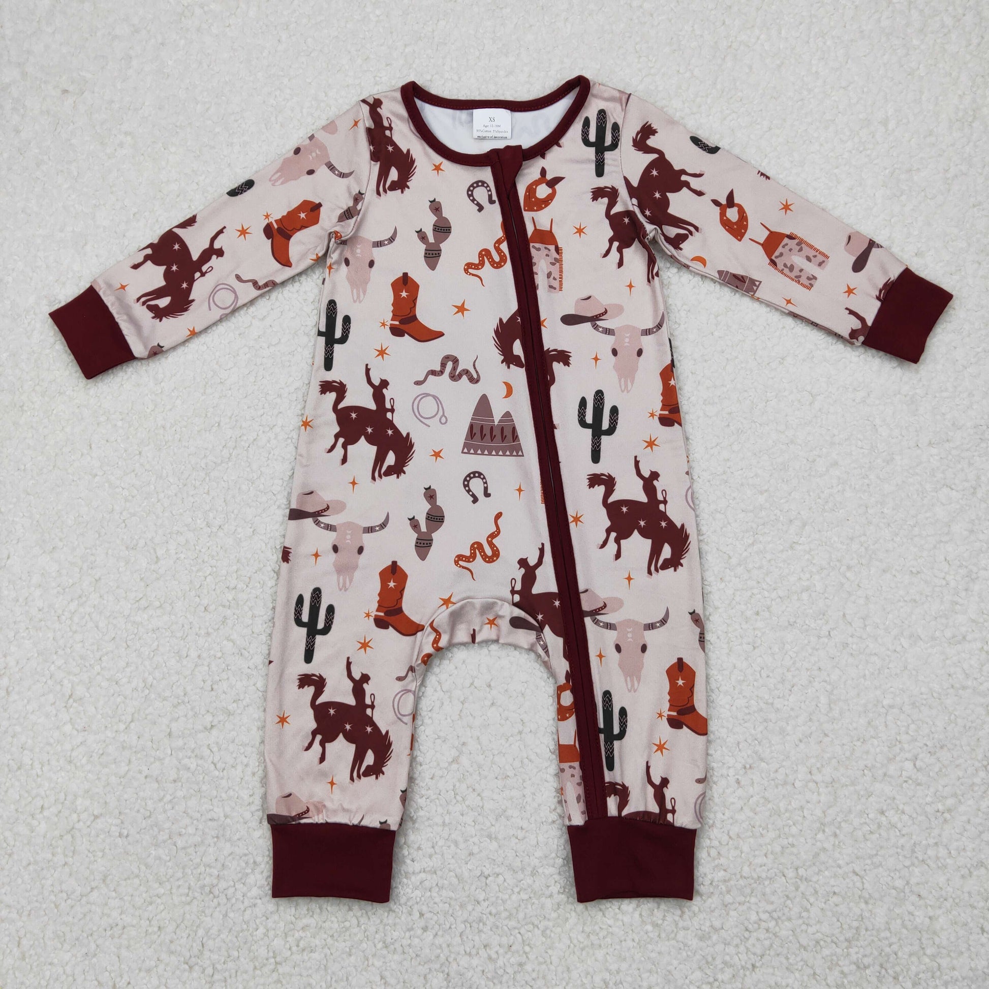 LR2188 Baby Boys Western Long Sleeve Zip Romper