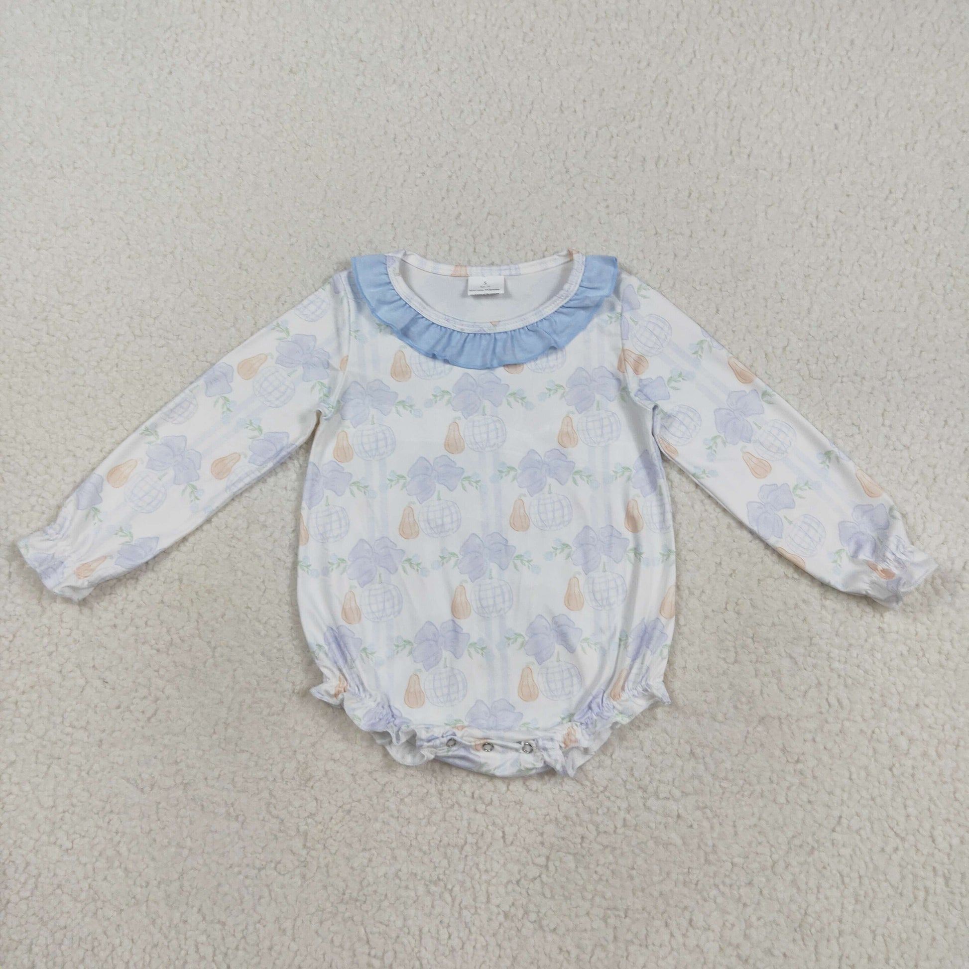 LR2312 Baby girls pumpkin long sleeve bubble romper