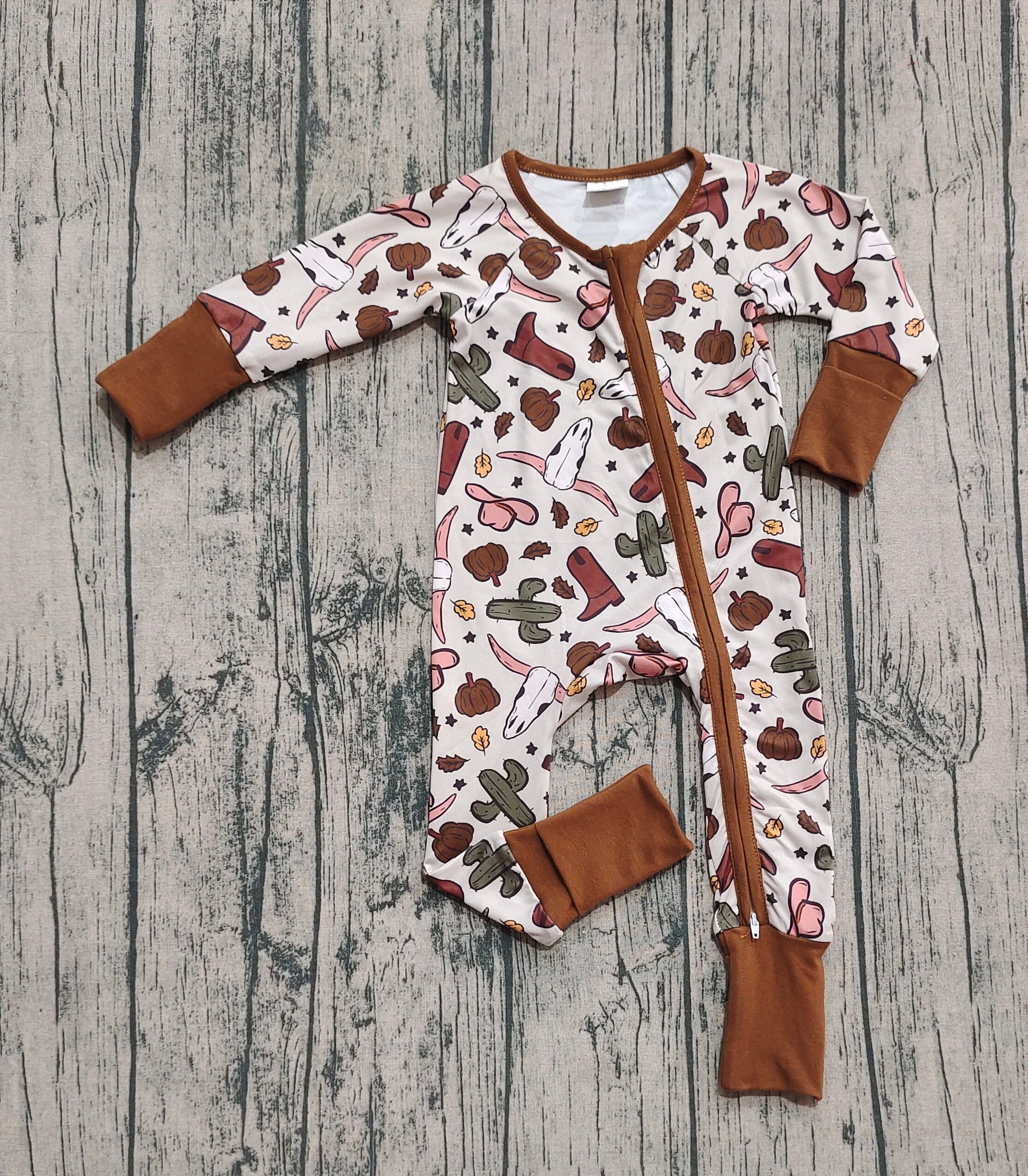 LR2334 Baby Boys Western Long Sleeve Ziper Footie Romper Preorder
