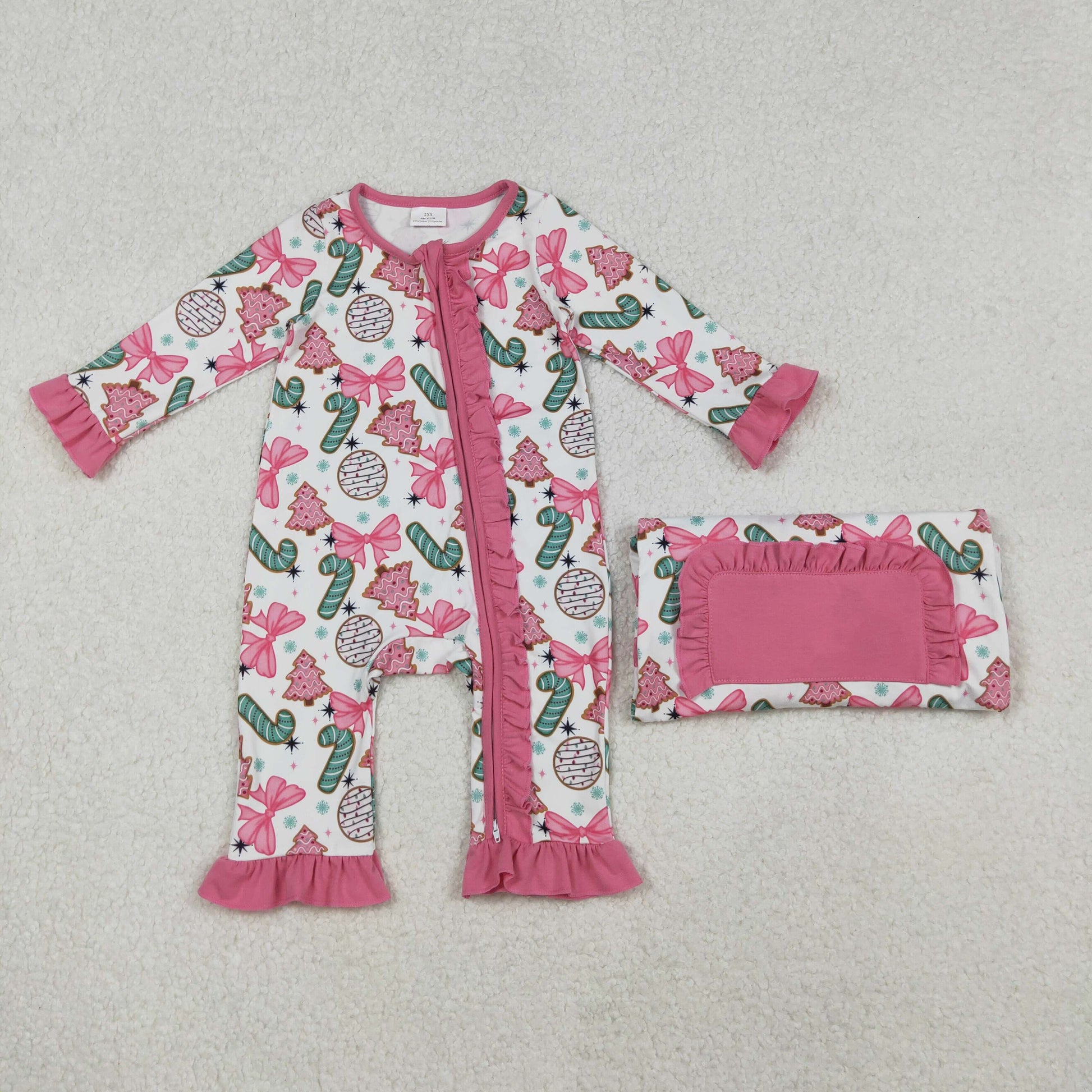 Baby Girls Christmas Party Cute Pink Ruffle Zippy Romper
