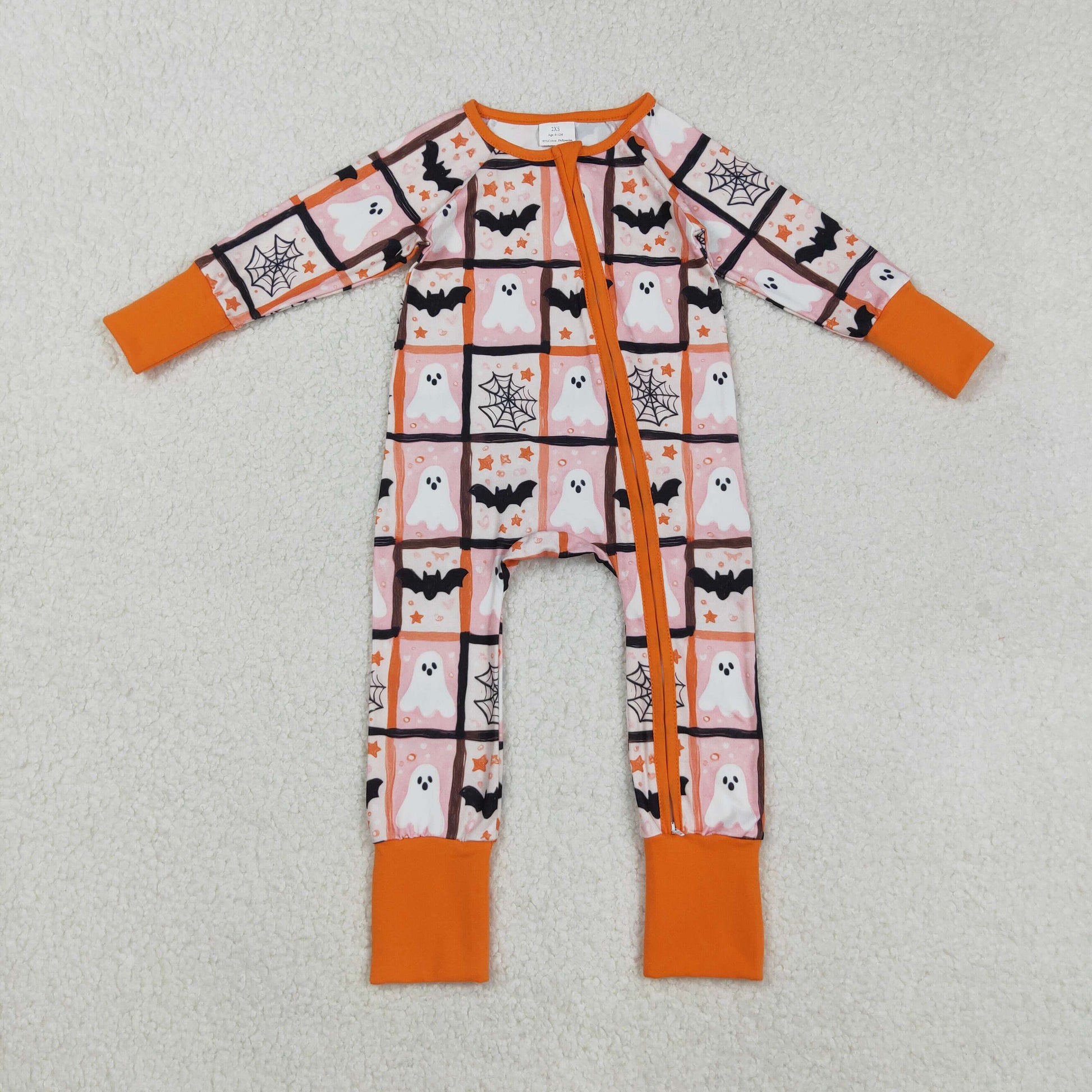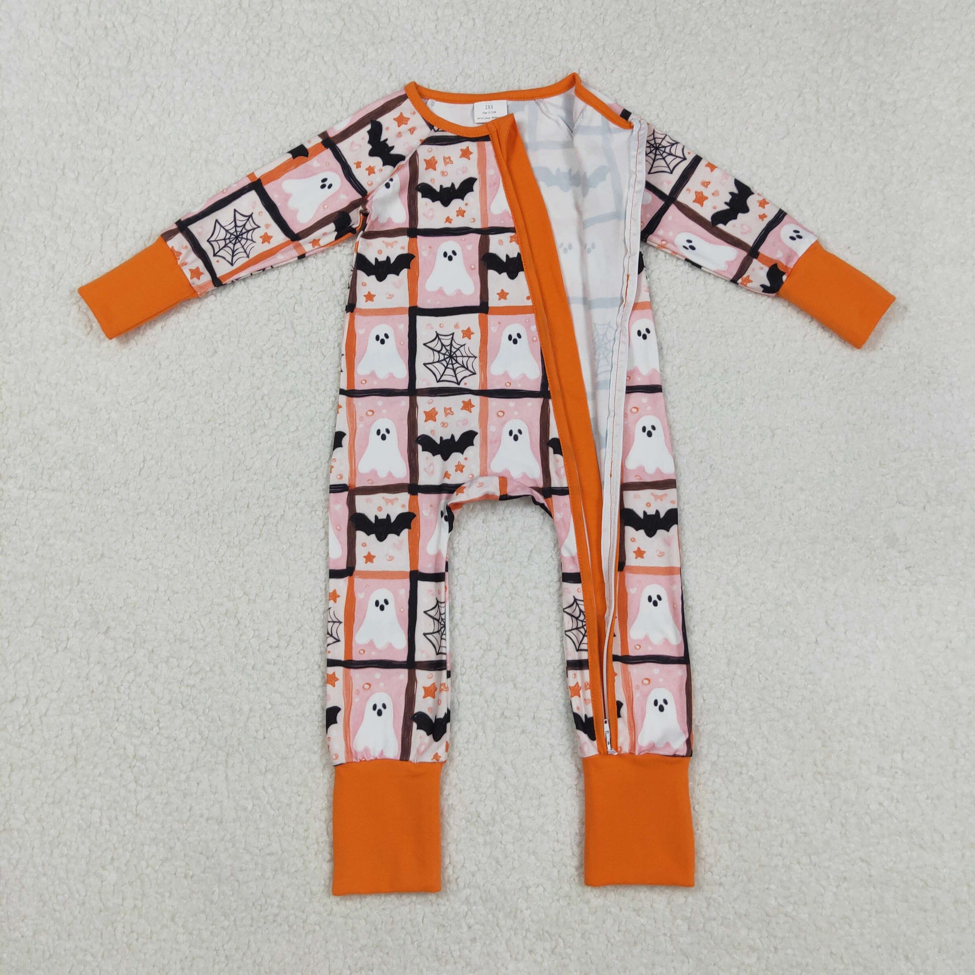 LR2539 Baby Boys Halloween Bat Long Sleeve Zippy Romper