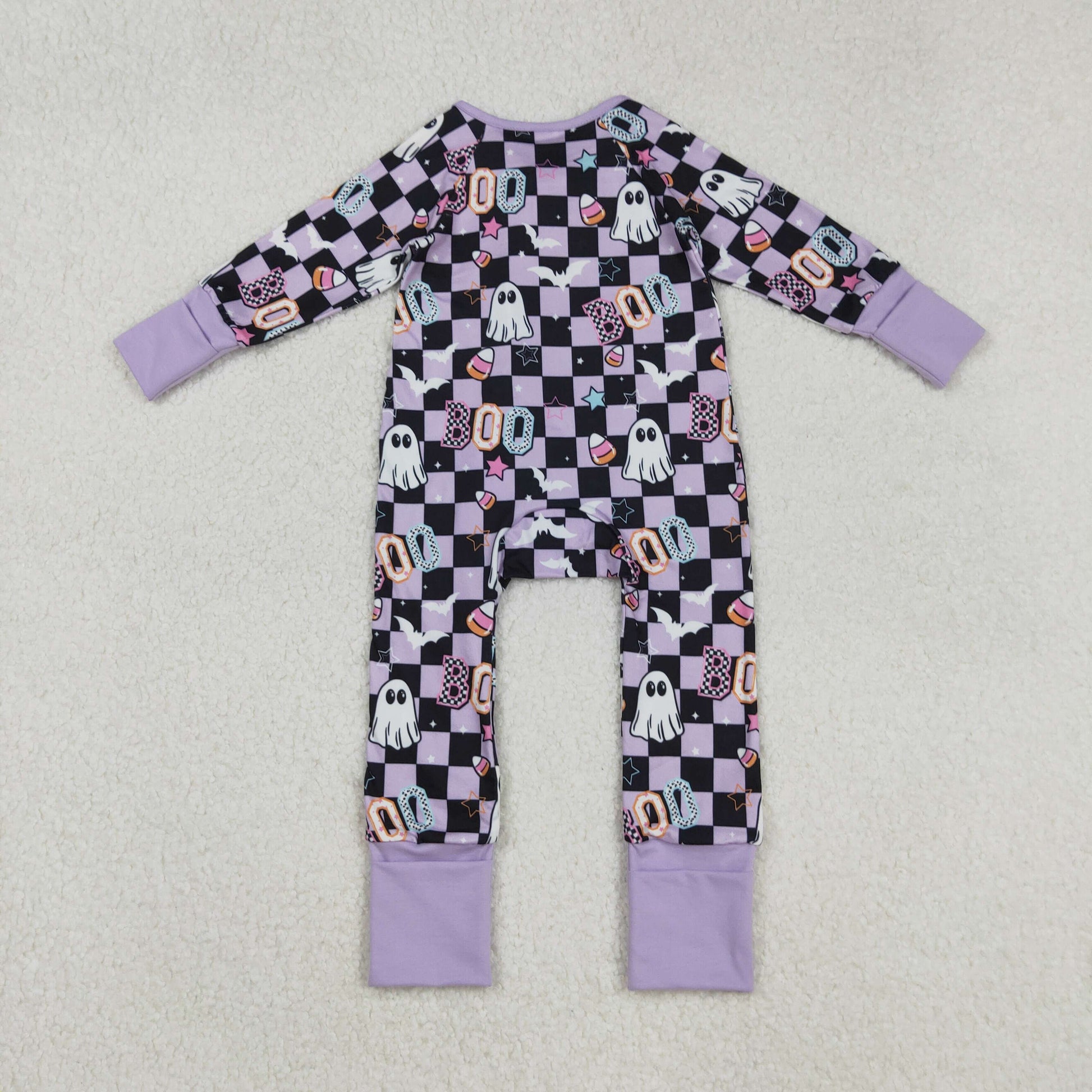 LR2541 Baby Girls Halloween Boo Zipper Romper