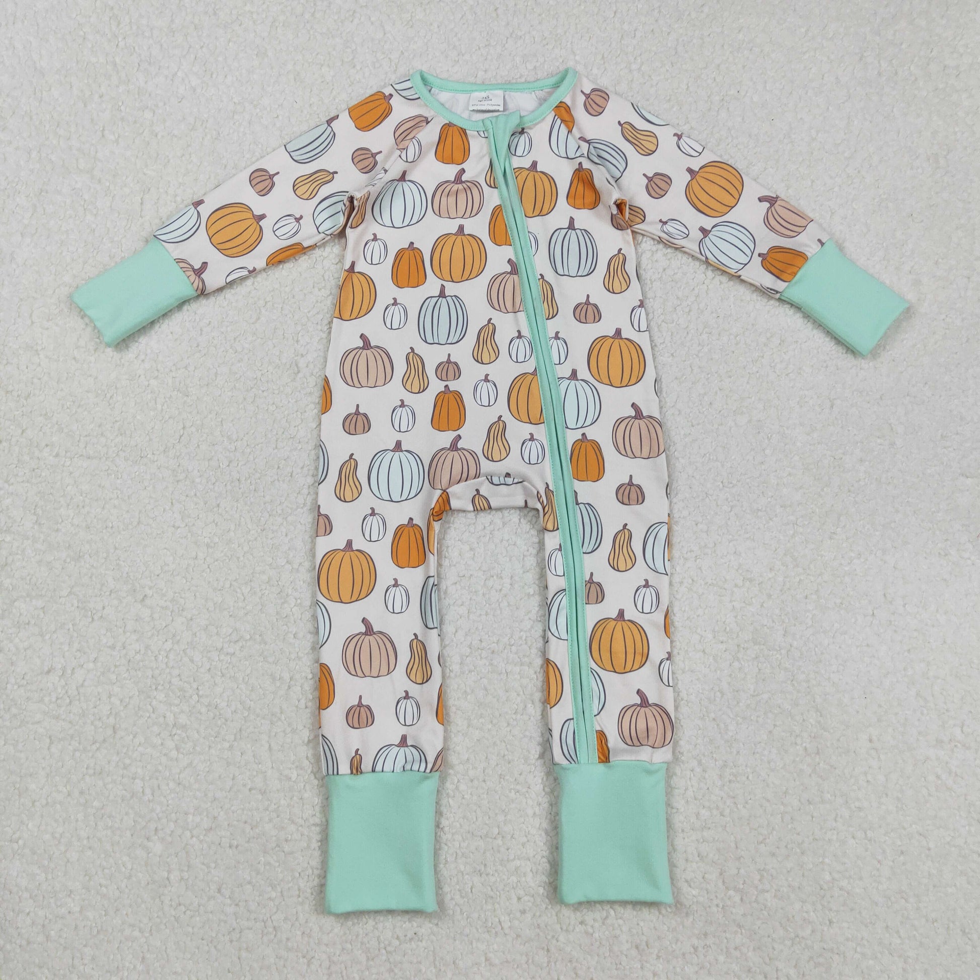 LR2565 Baby Boys Pumpkin Long Sleeve Zip Romper