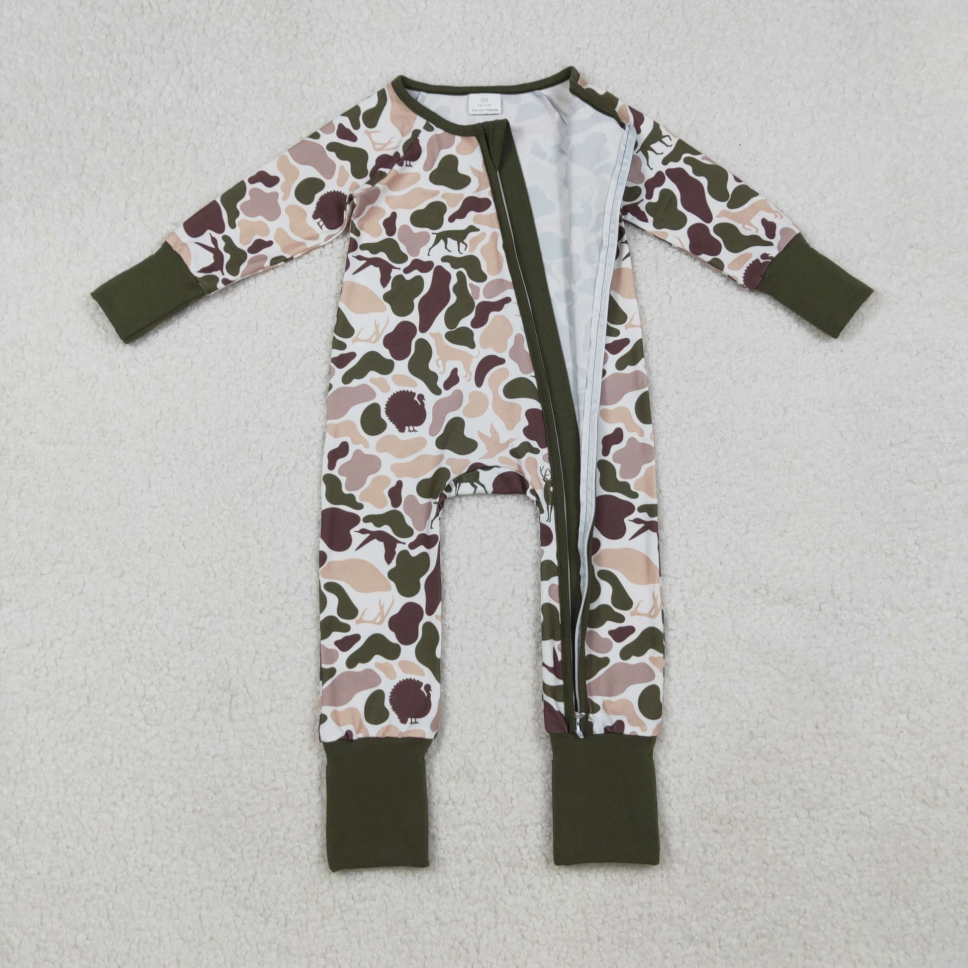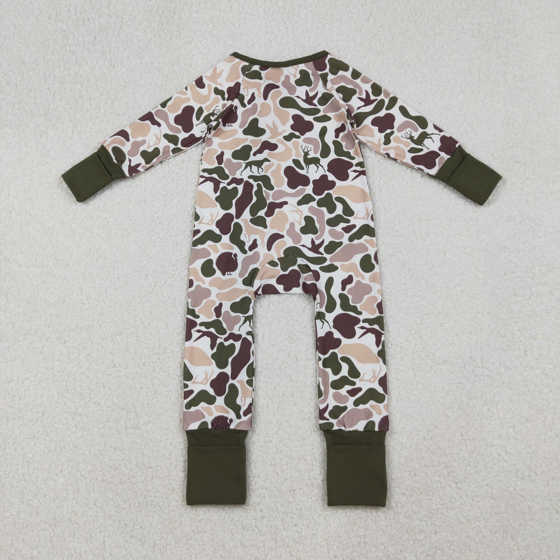 LR2590 Baby Boys Dark Green Camo Long Sleeve Zippy Romper