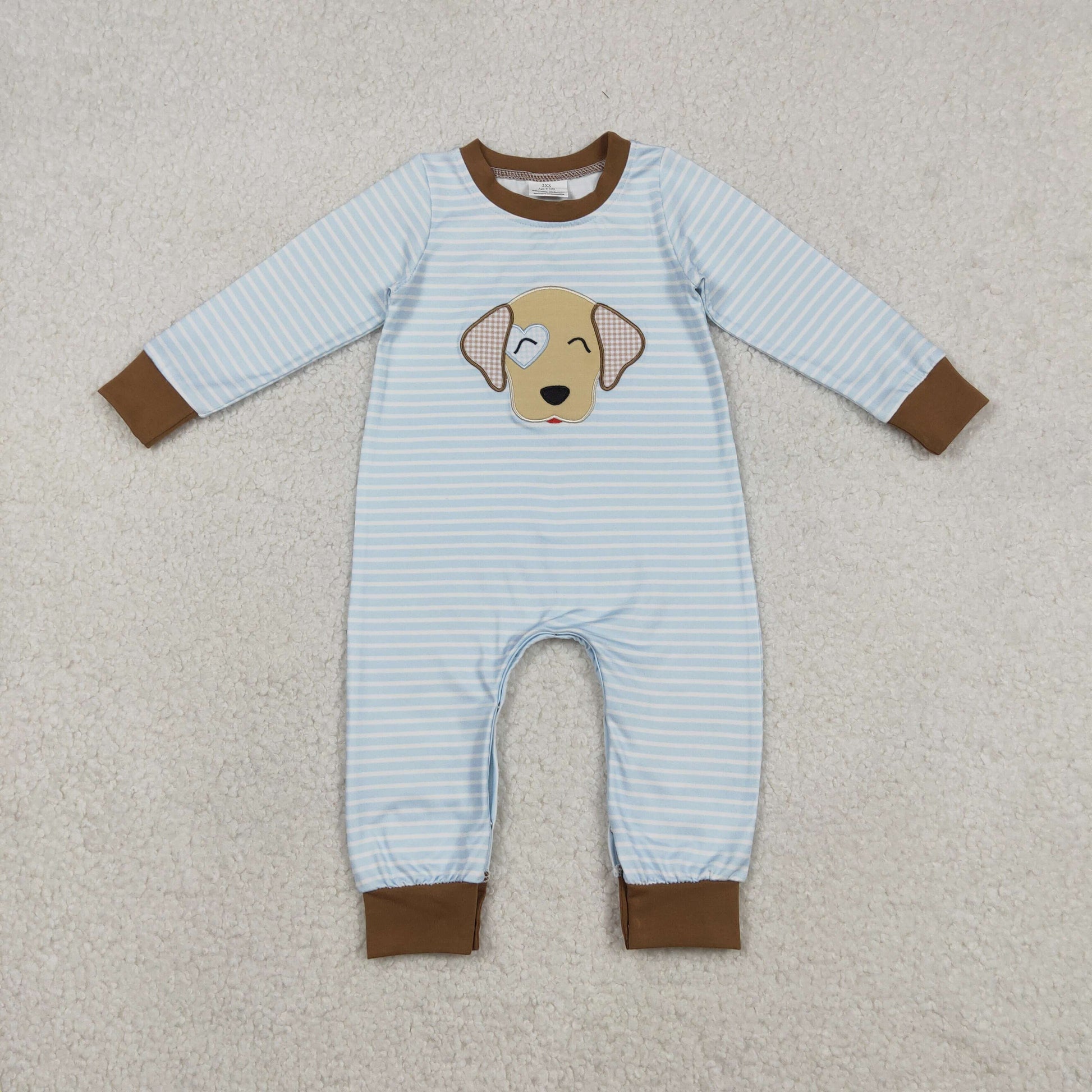 LR2659 Baby Boys Valentine's Day Dog Striped Romper