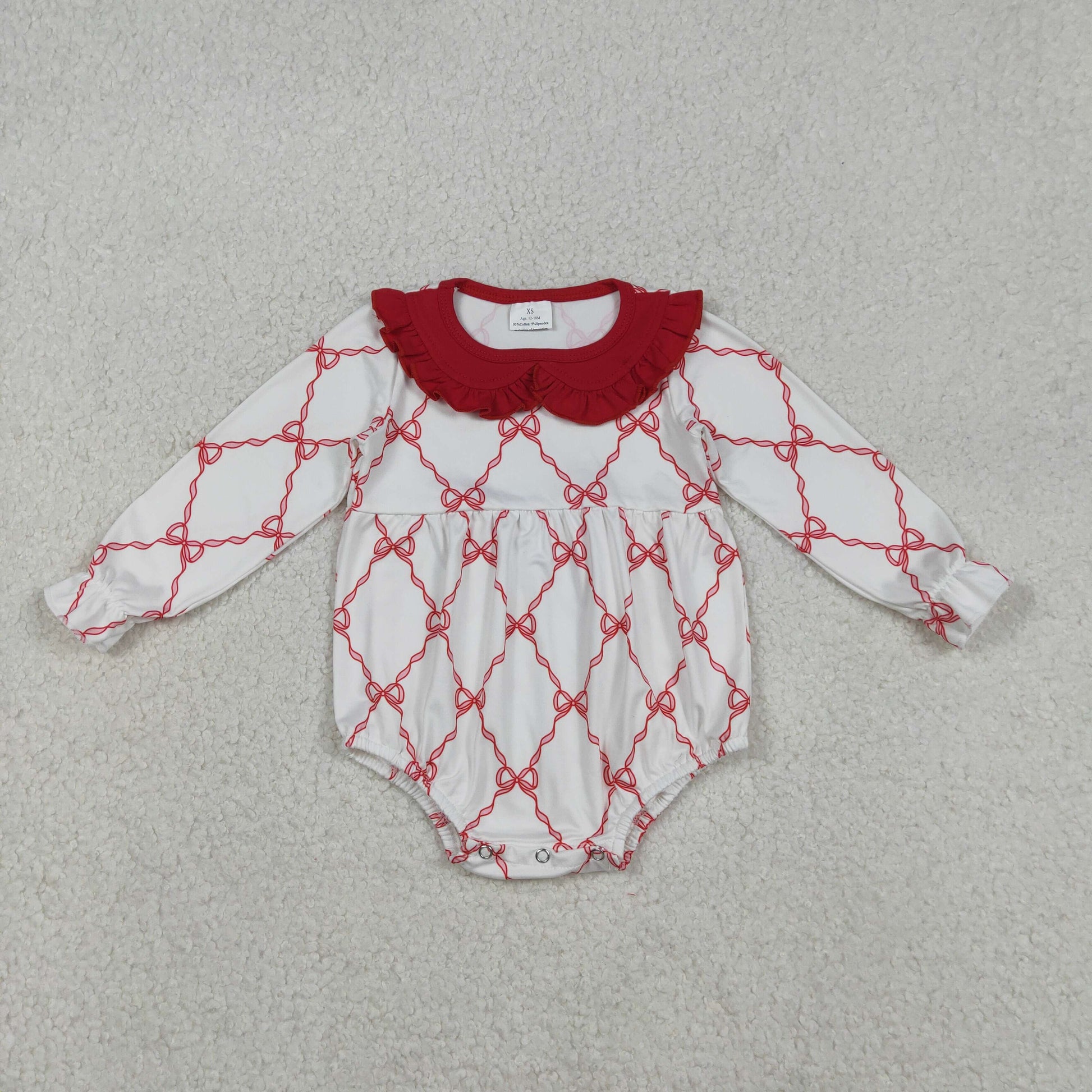 LR2725 Baby Girls Red Bow Long Sleeve Rompre
