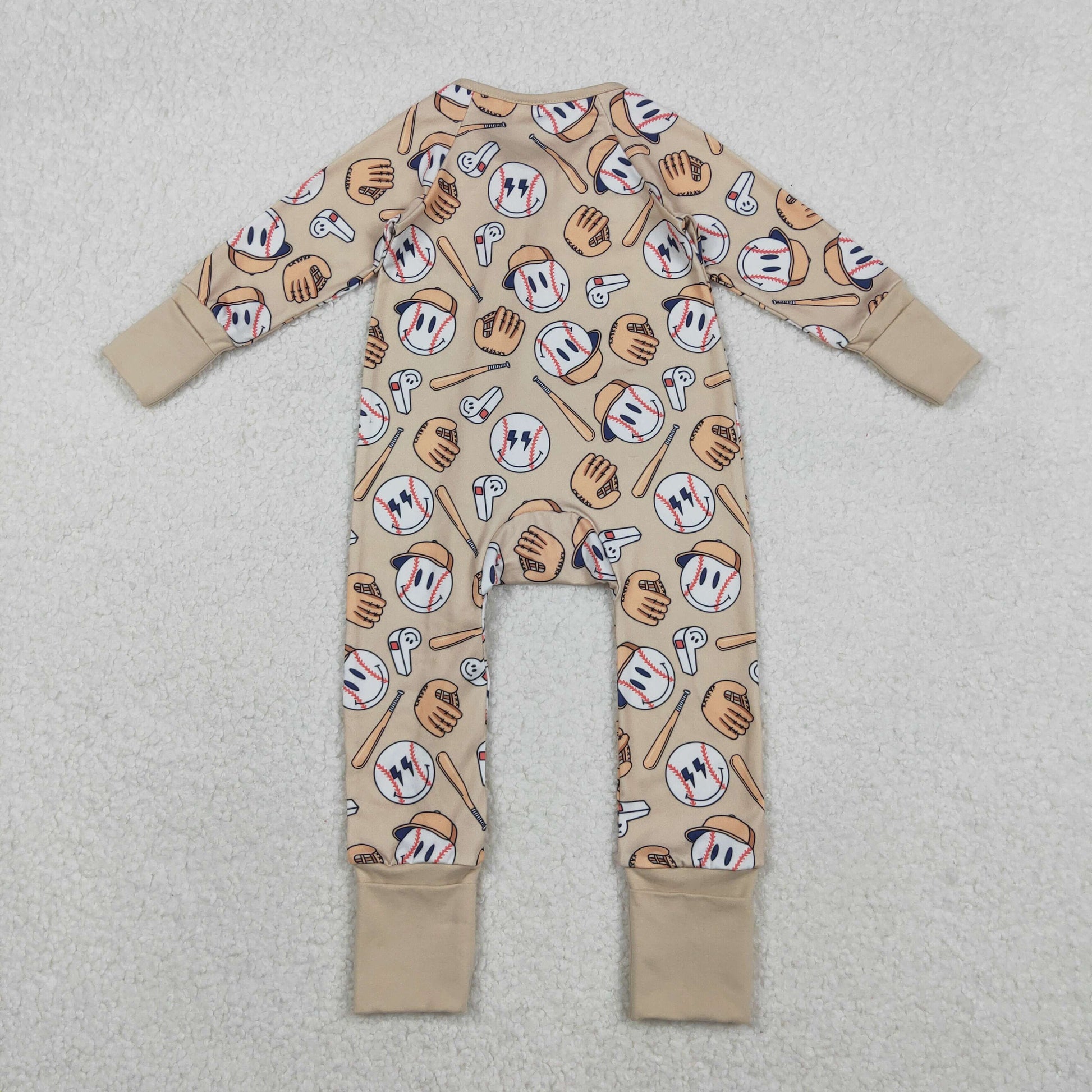 LR2816 Baby BoysBaseball Long Sleeve Zip-up Convertible Romper