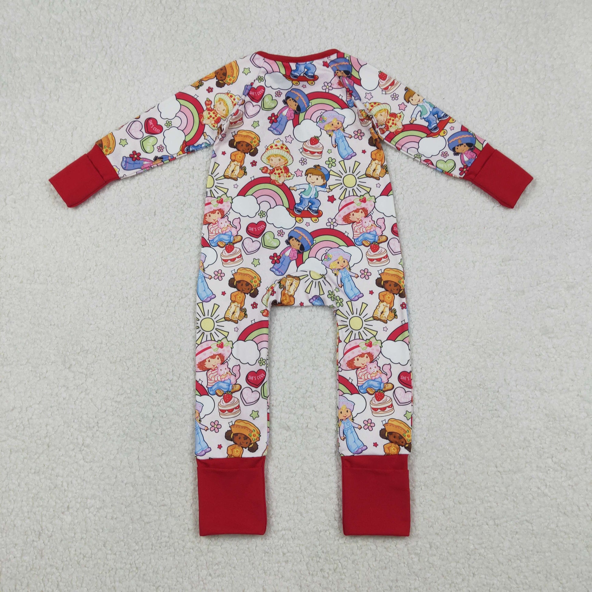LR2852 Bbay Girls Strawberr Girl Long Sleeve Zipper Romper